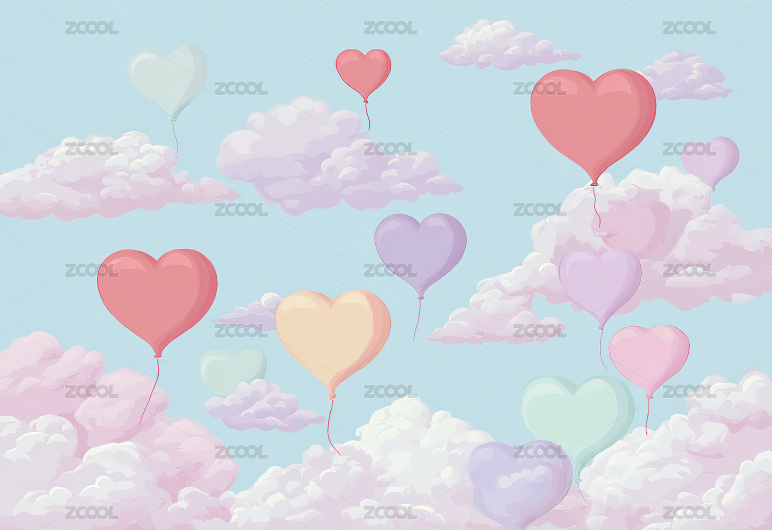 爱心,气球,插画,浪漫,天空,唯美,梦幻,庆祝,甜蜜,轻盈
