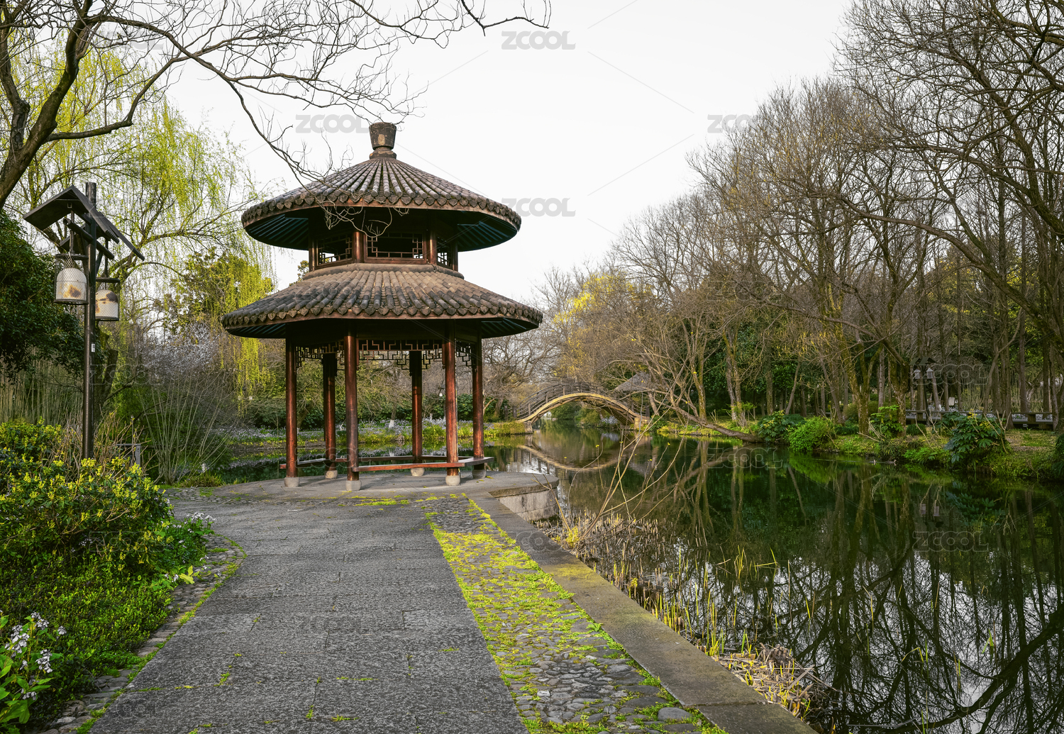 亚洲,东亚,中国,浙江省,杭州市,西湖,茅家埠,亭子,树木,绿色