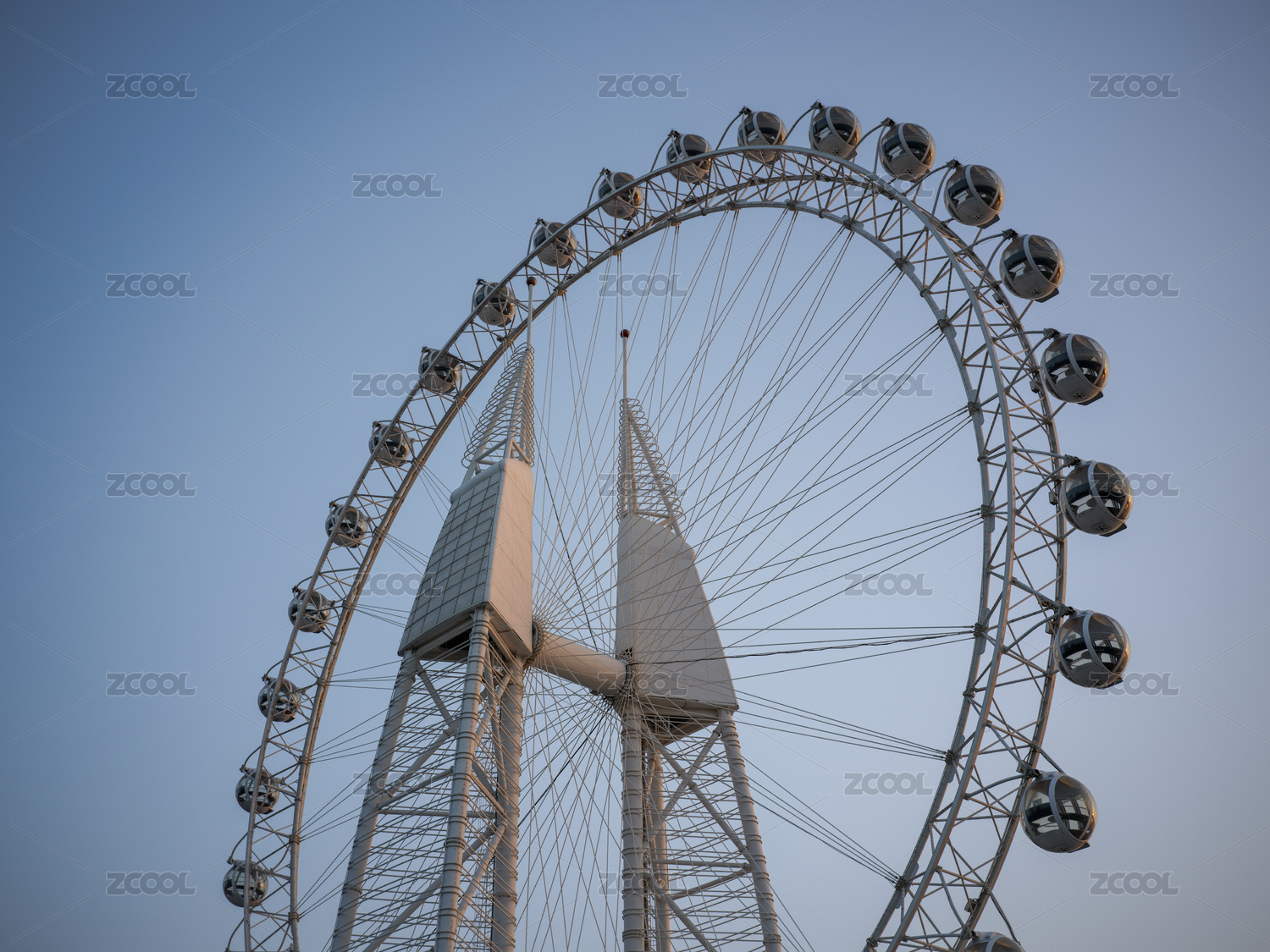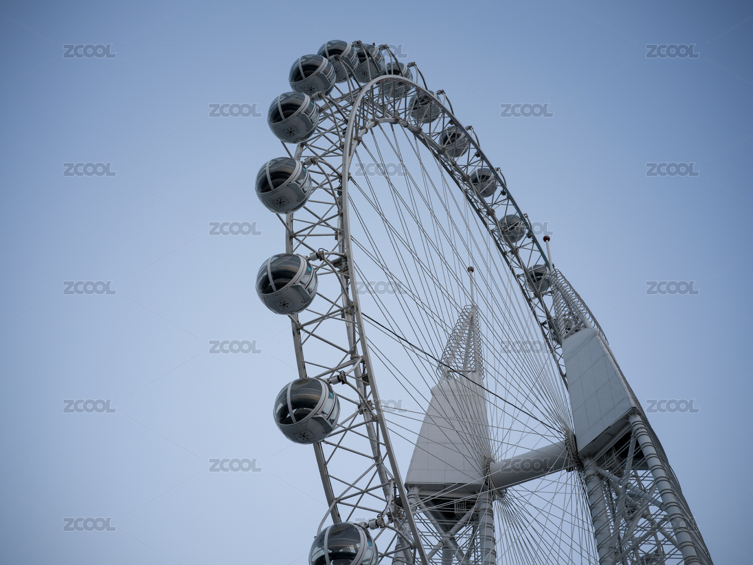 厦门海上世界摩天轮在蓝天下的壮观景象