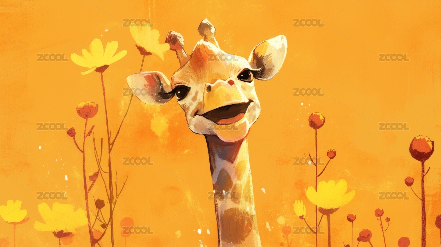 长颈鹿可爱唯美野生动物3D卡通插画壁纸