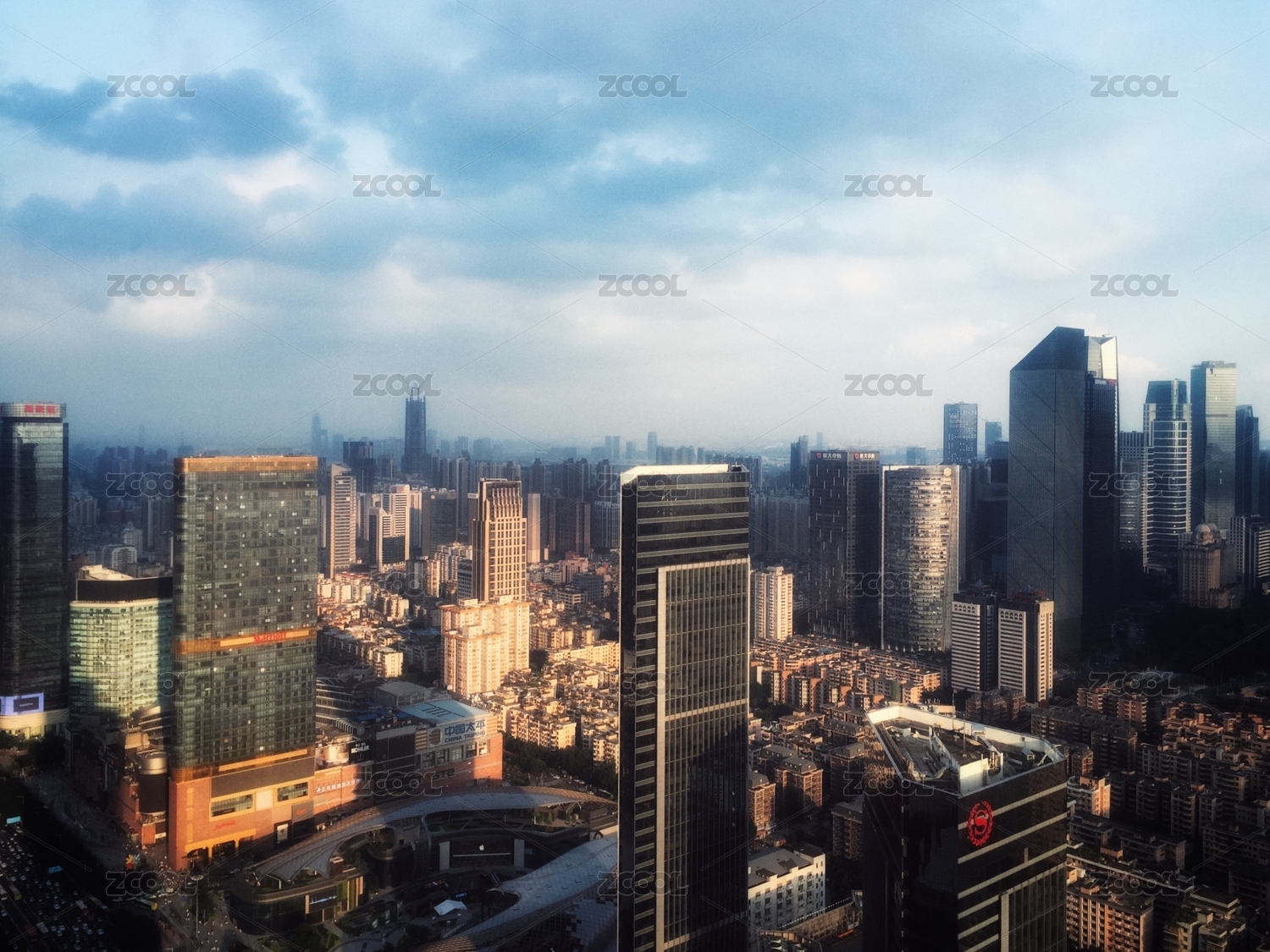 四川成都市透过高楼俯瞰远洋太古里