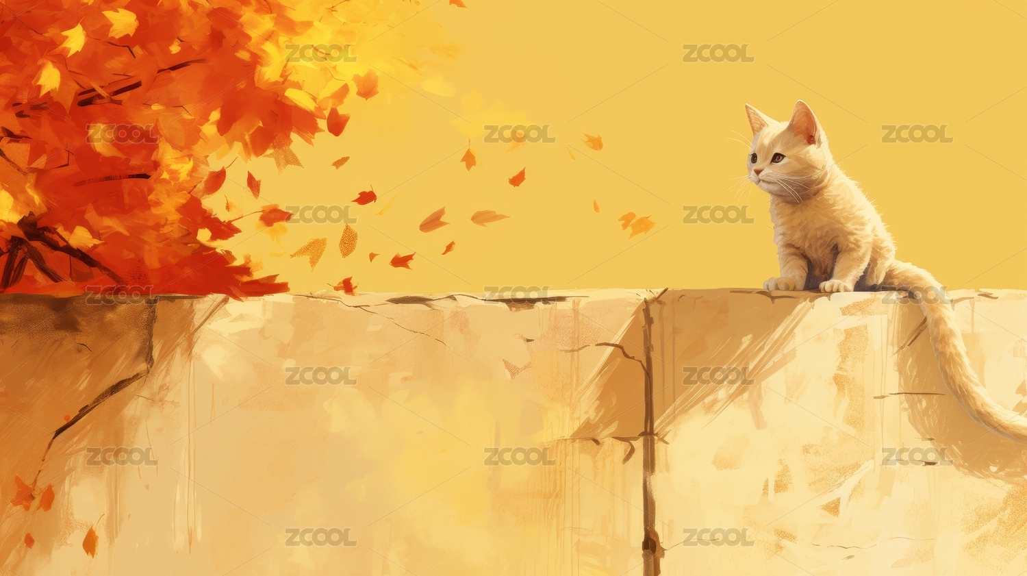 花猫,银杏,树叶,落叶,金秋,阳光,秋日,仰头