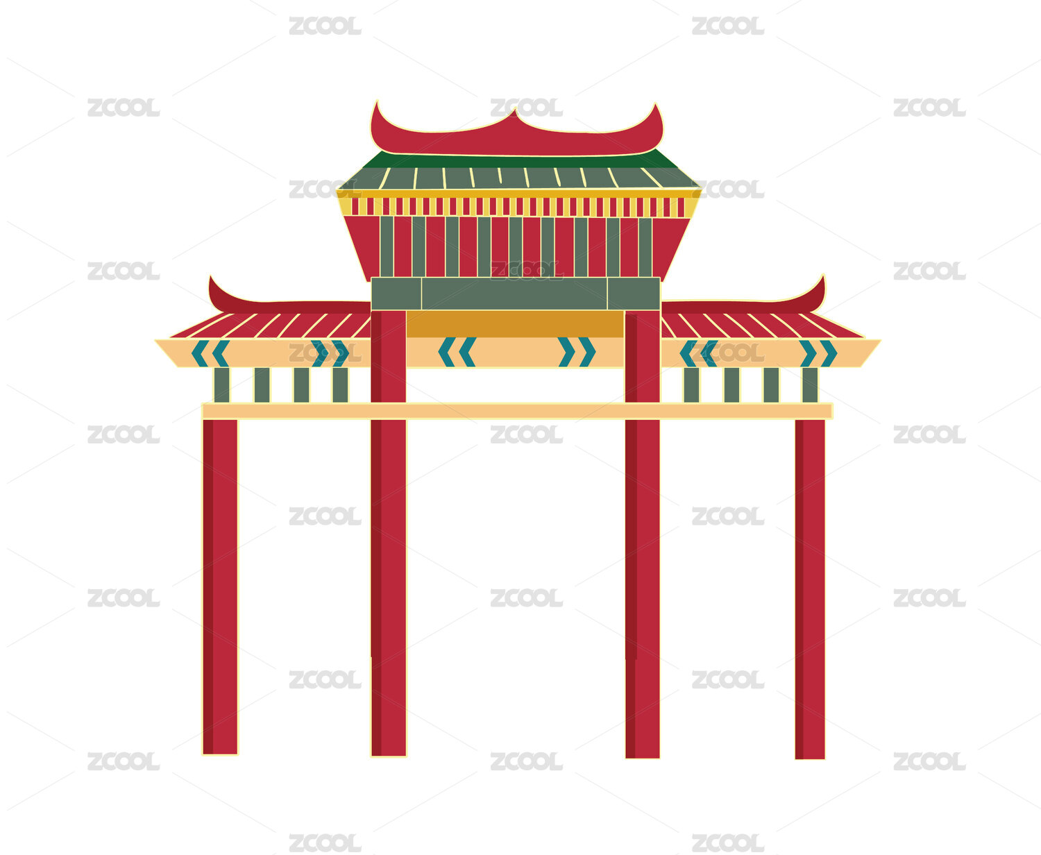 卡通手绘中国风夫子庙老街牌坊古建筑插画