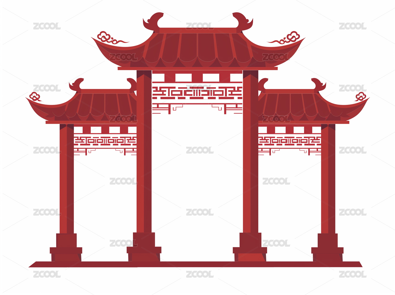 矢量国潮春节元宵节灯笼装饰牌坊美陈背景墙