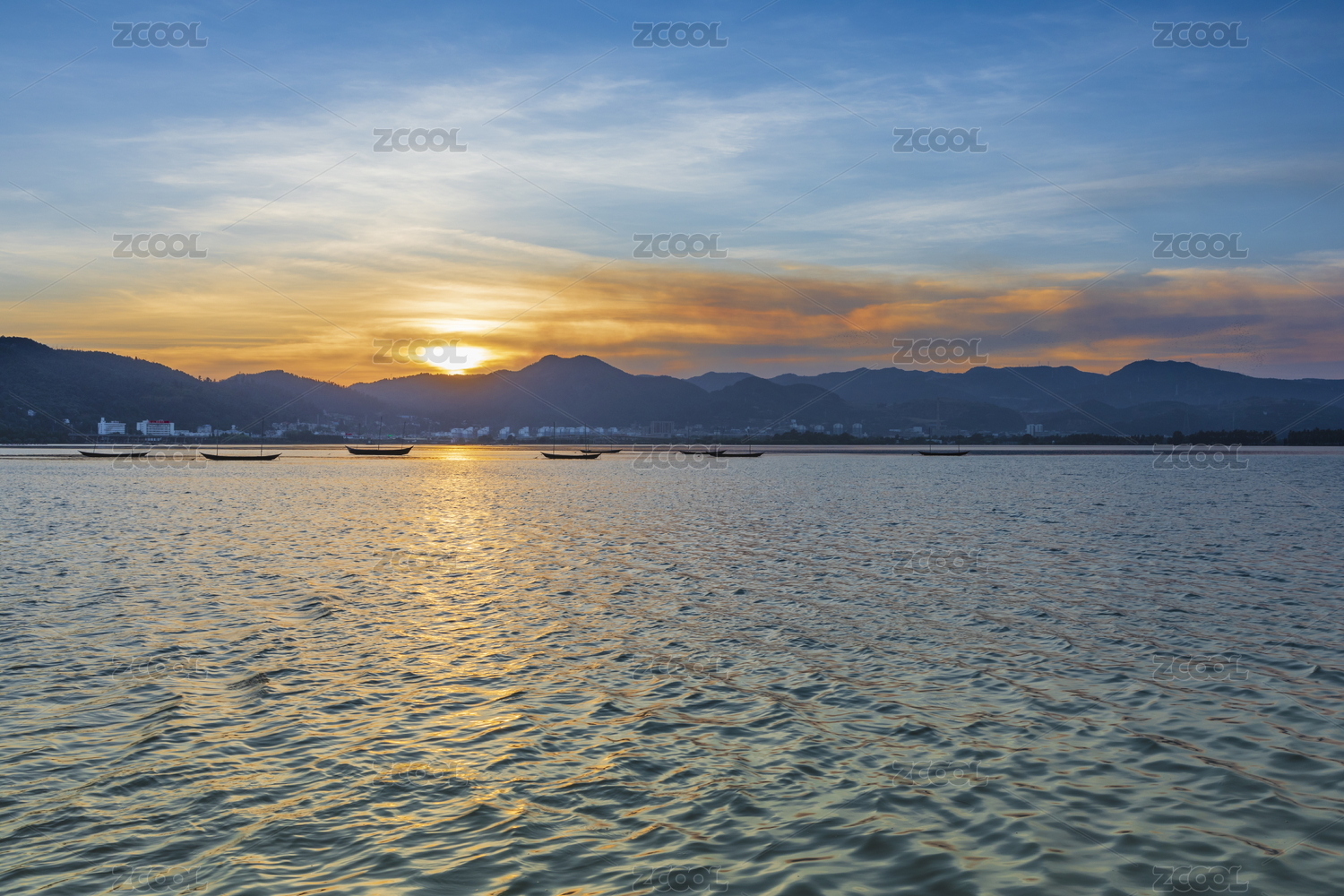 中国云南省玉溪市澄江县抚仙湖落日风光