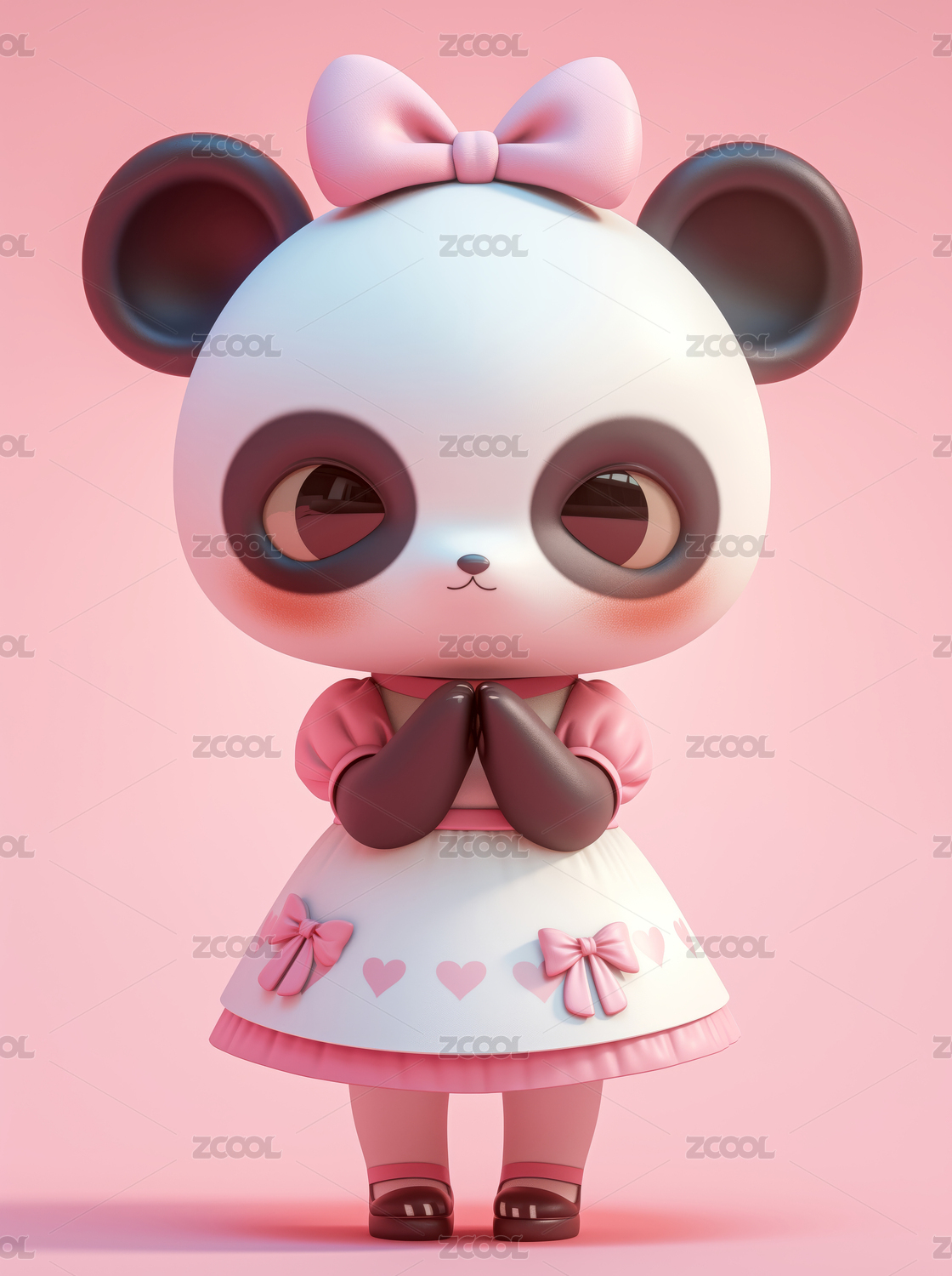 3D穿着裙子的粉色小熊卡通形象插画