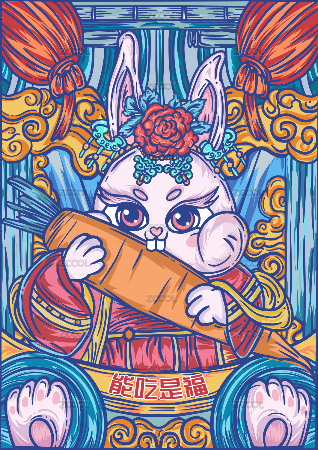 国潮矢量兔子吃胡萝卜