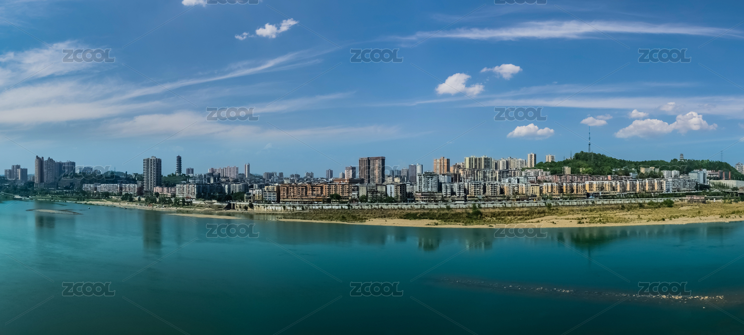 中国四川省南部县城区嘉陵江外滩高楼建筑