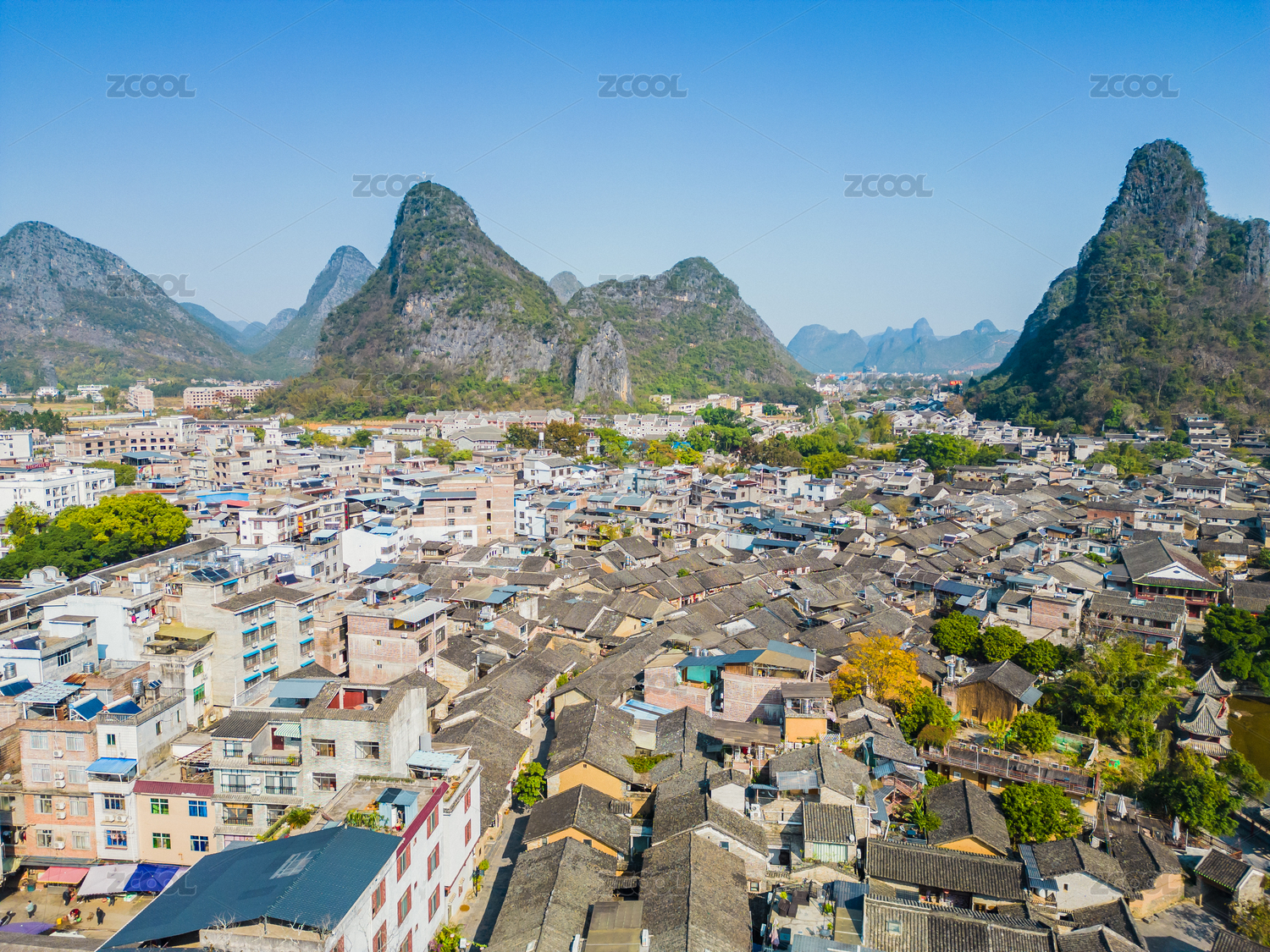 贺州,航拍,小镇,建筑,风光,城镇,黄姚镇,黄姚古镇,古镇风光,建筑风光