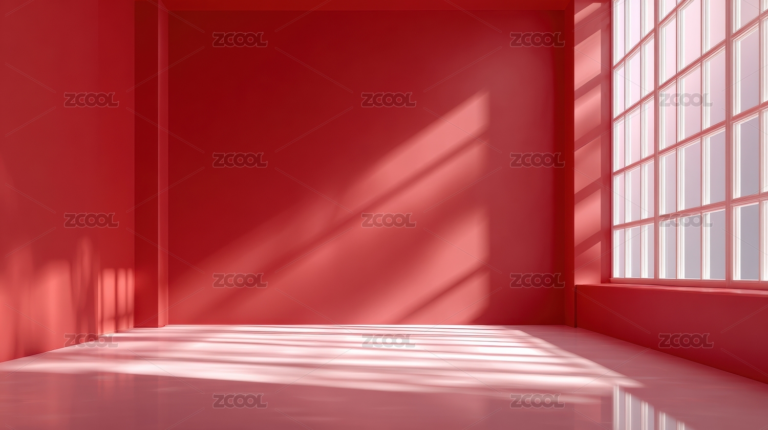 阳光洒落的红色静谧房间