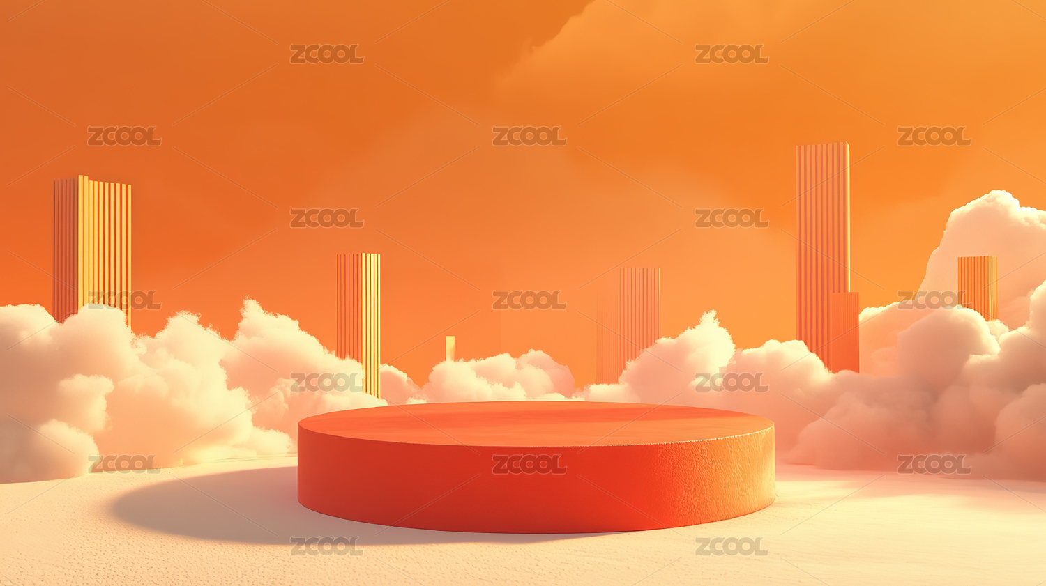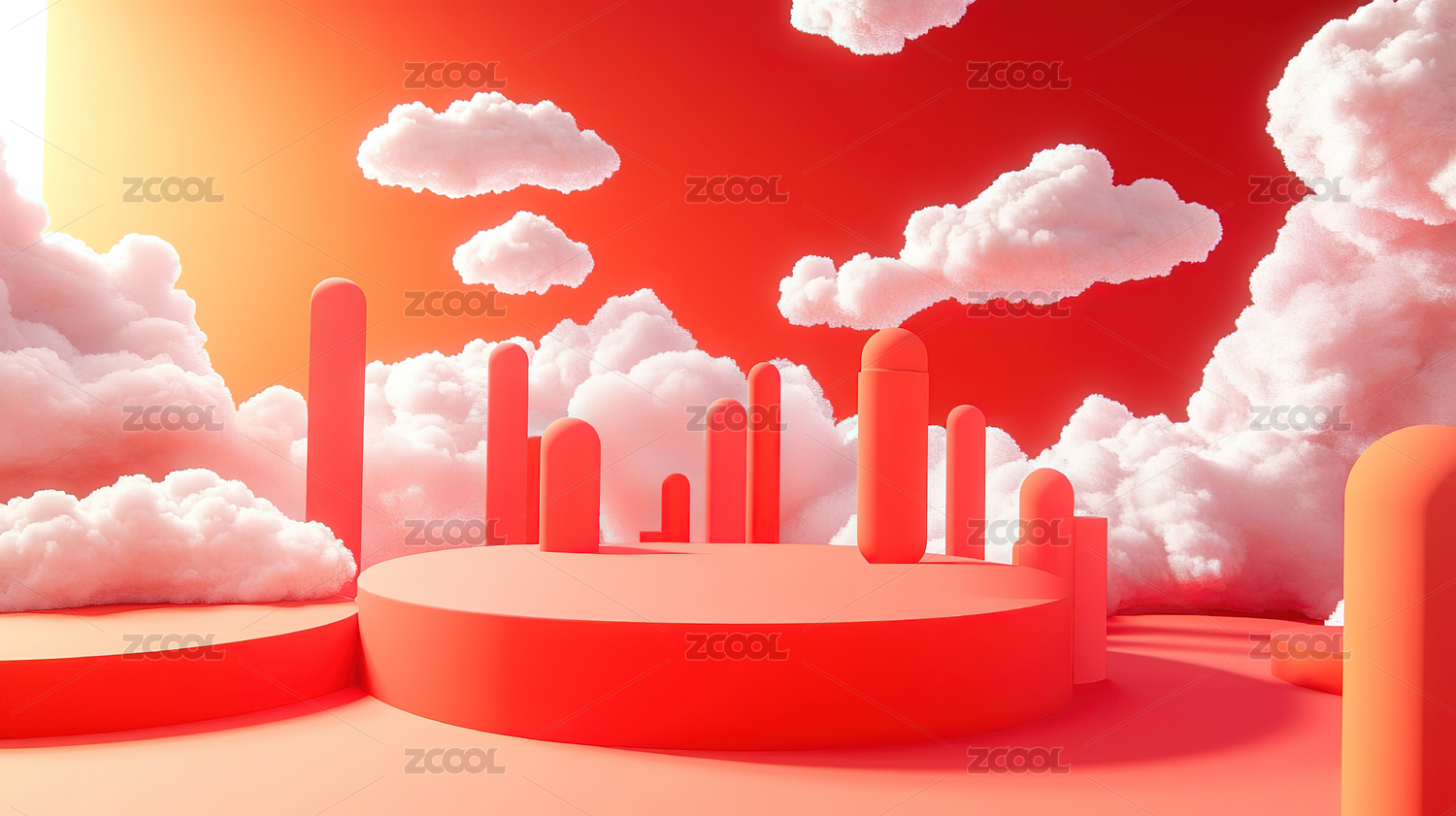3D现代建筑红色圆形电商产品展台