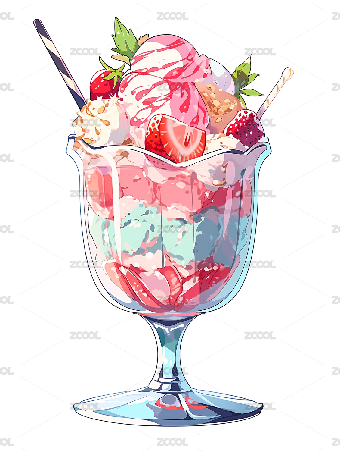缤纷水果甜品杯插画