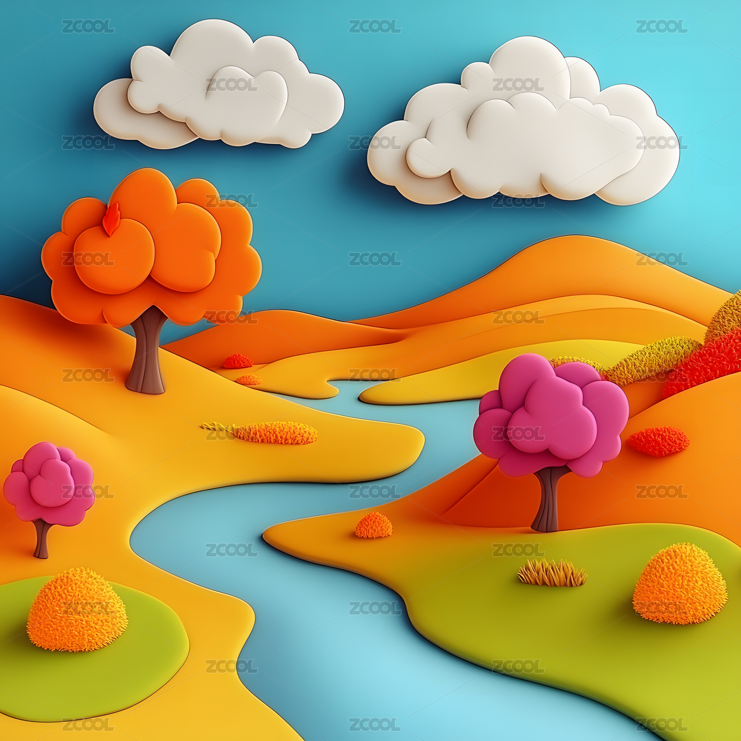 立秋节气户外旅行自然风景处暑卡通唯美插画