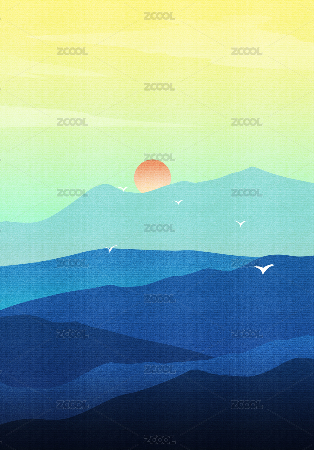 水天一色扁平风插画