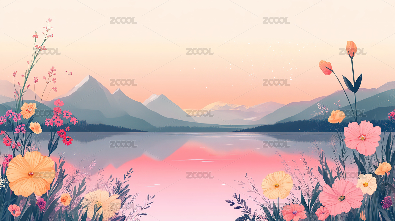 自然,地形,插画,户外,天空,花,云,旅行,风景,季节