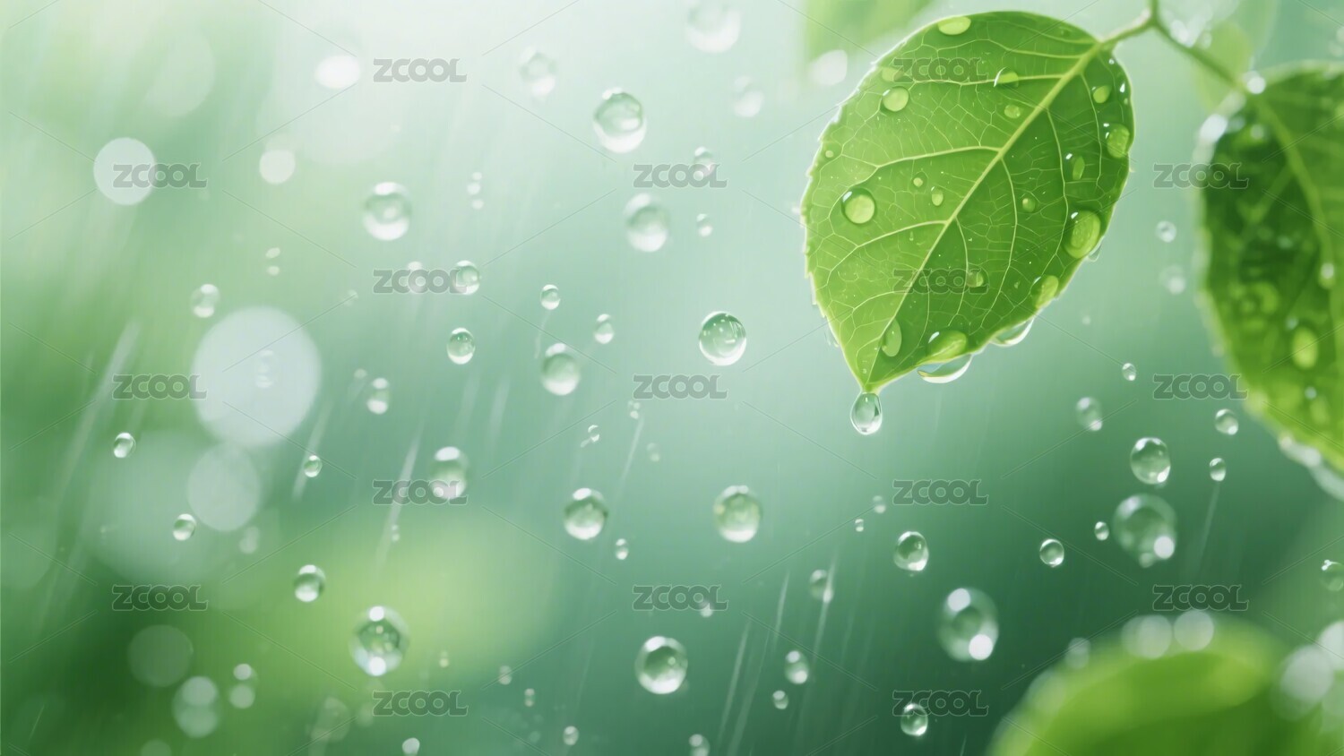 绿叶上的晶莹雨滴