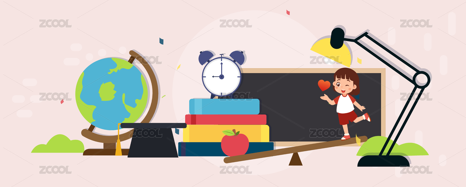 学生开学教育书本文具概念插画