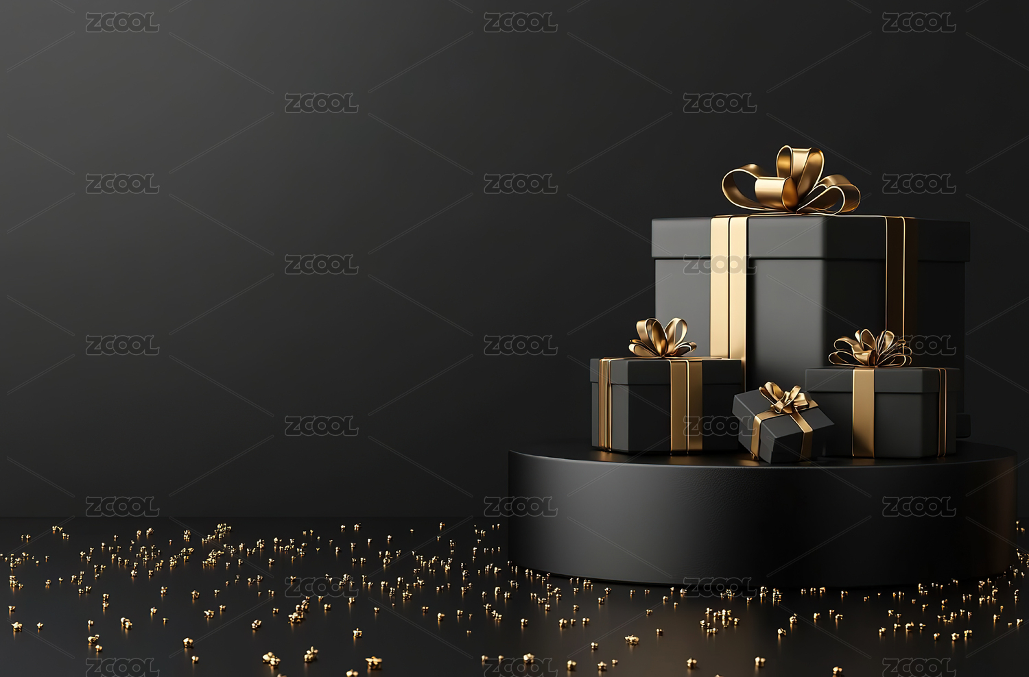 黑色礼盒与金色丝带的节日场景