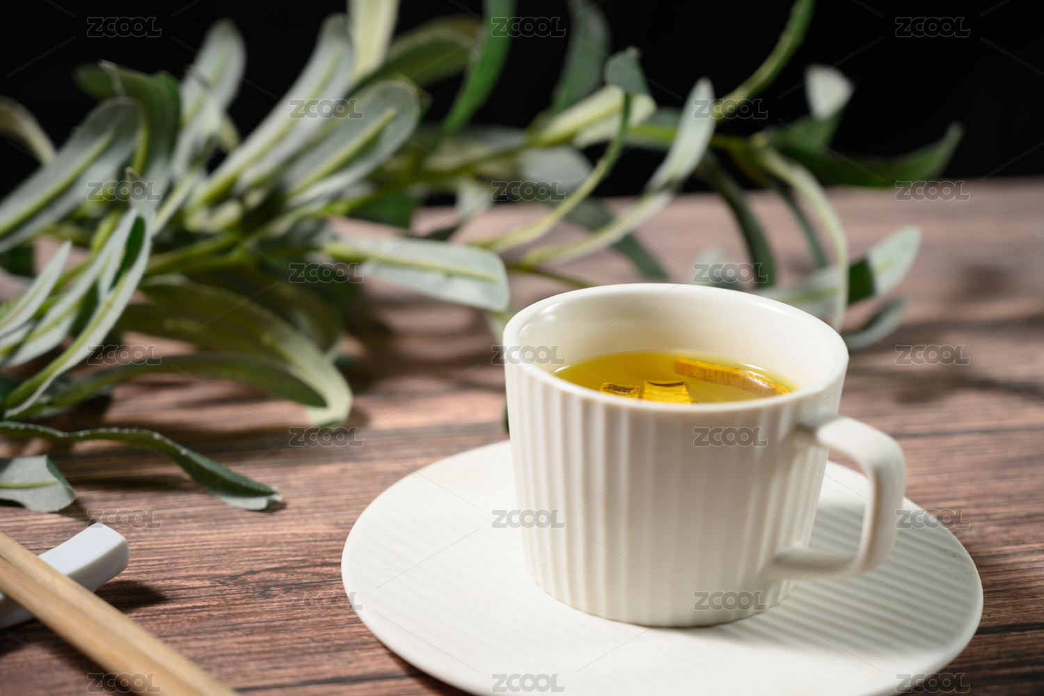 桌面上的杯子里的甘甜的黄柏茶
