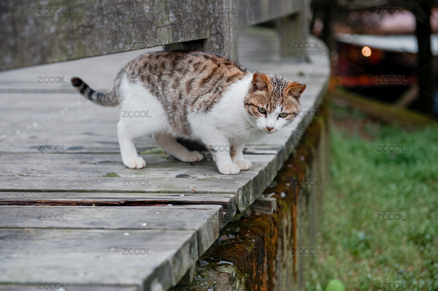 冬天早上的泰国曼谷的居民小区路边的橘猫