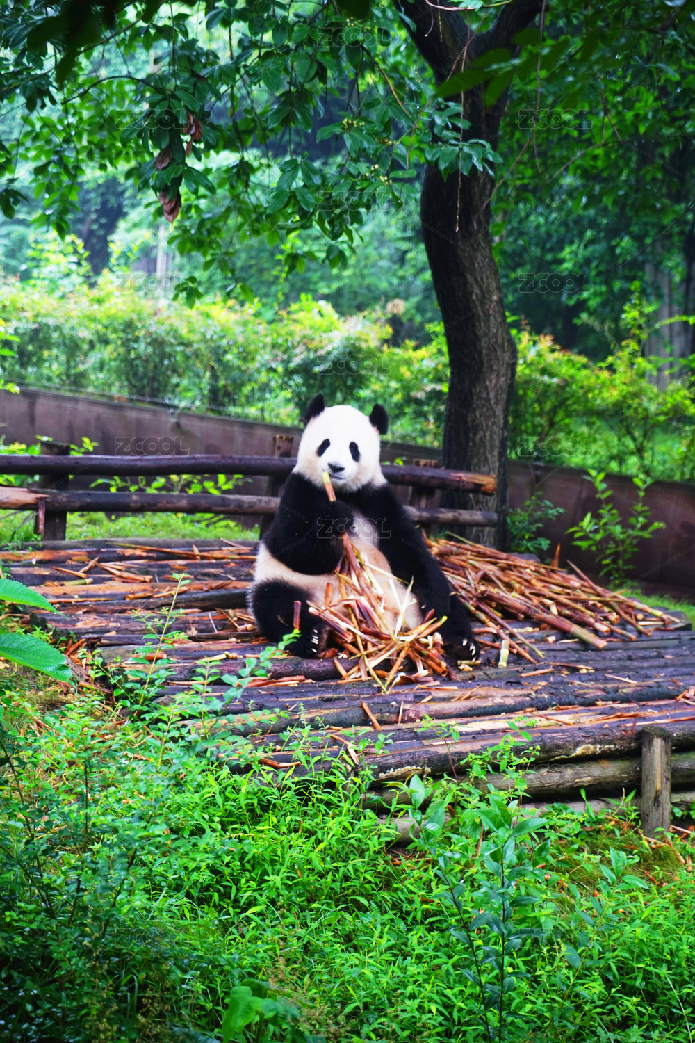 动物园里进食的大熊猫