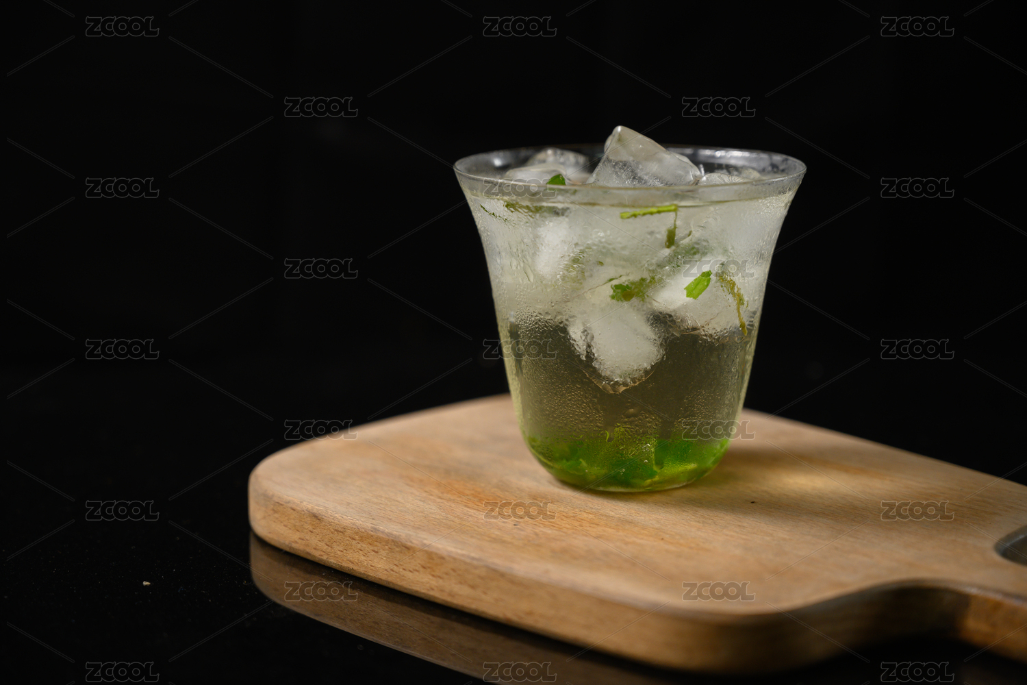 桌面上的杯子里的甘甜可口的冰冻油甘茶