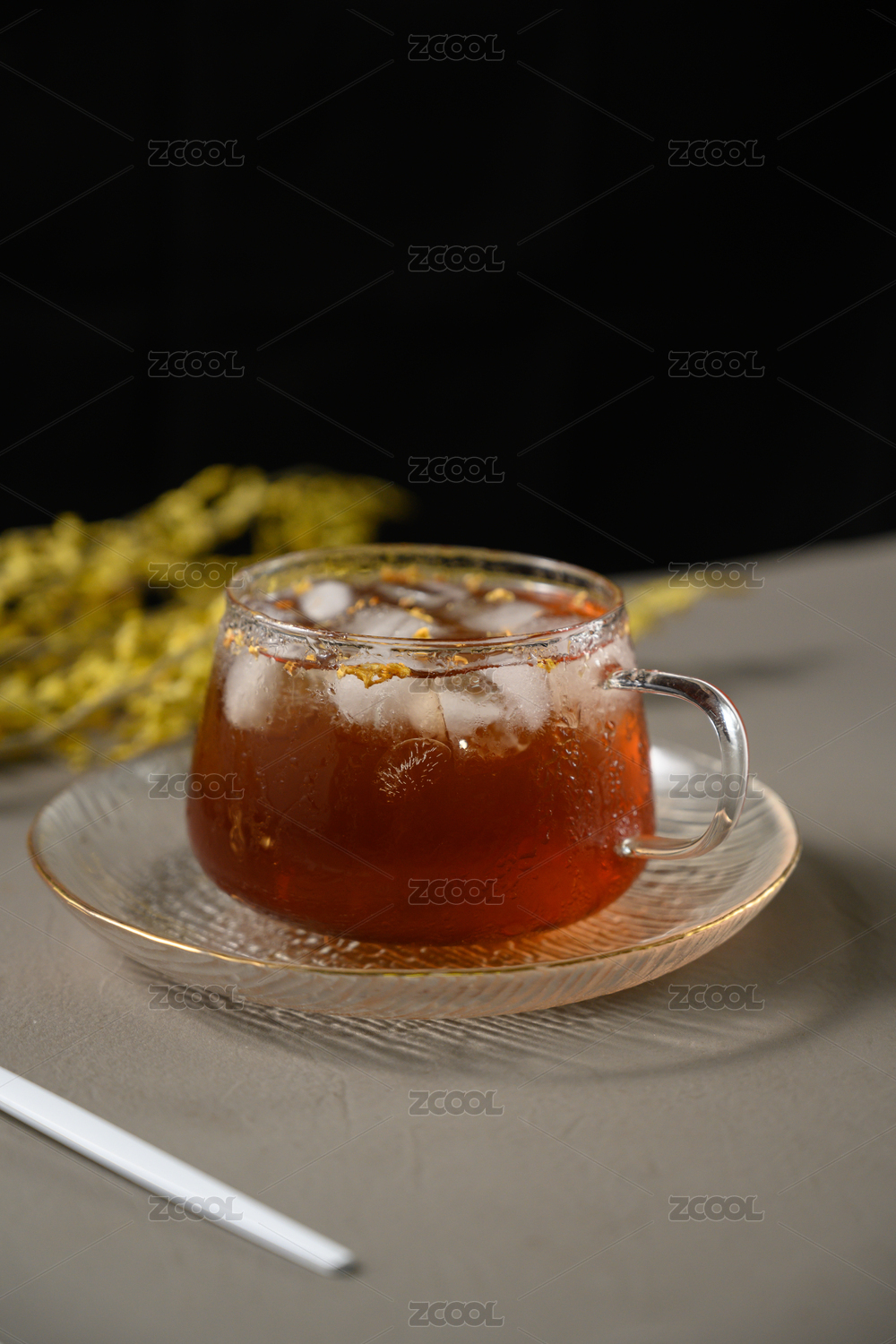 桌面上的杯子里的美味可口的桂花酸梅汤