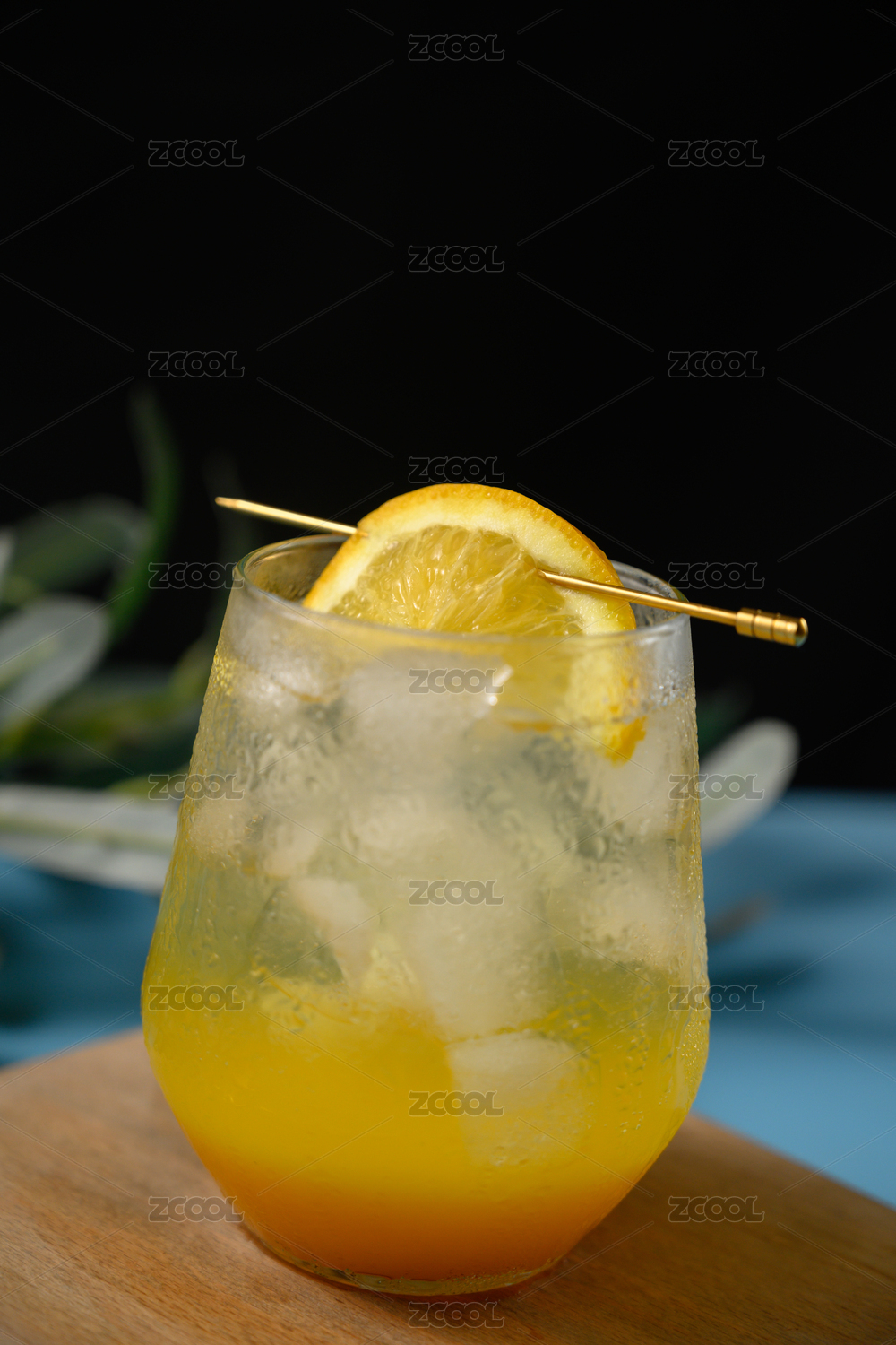 桌面上的杯子里的美味可口的香橙苏打水