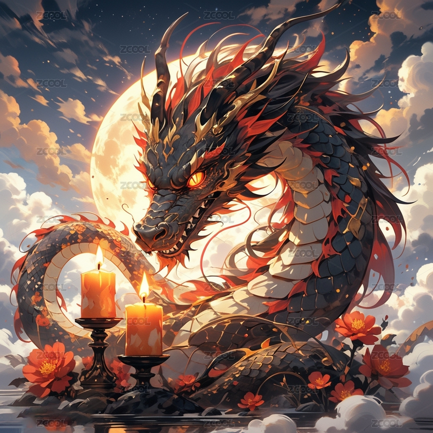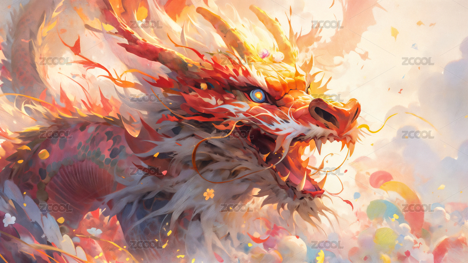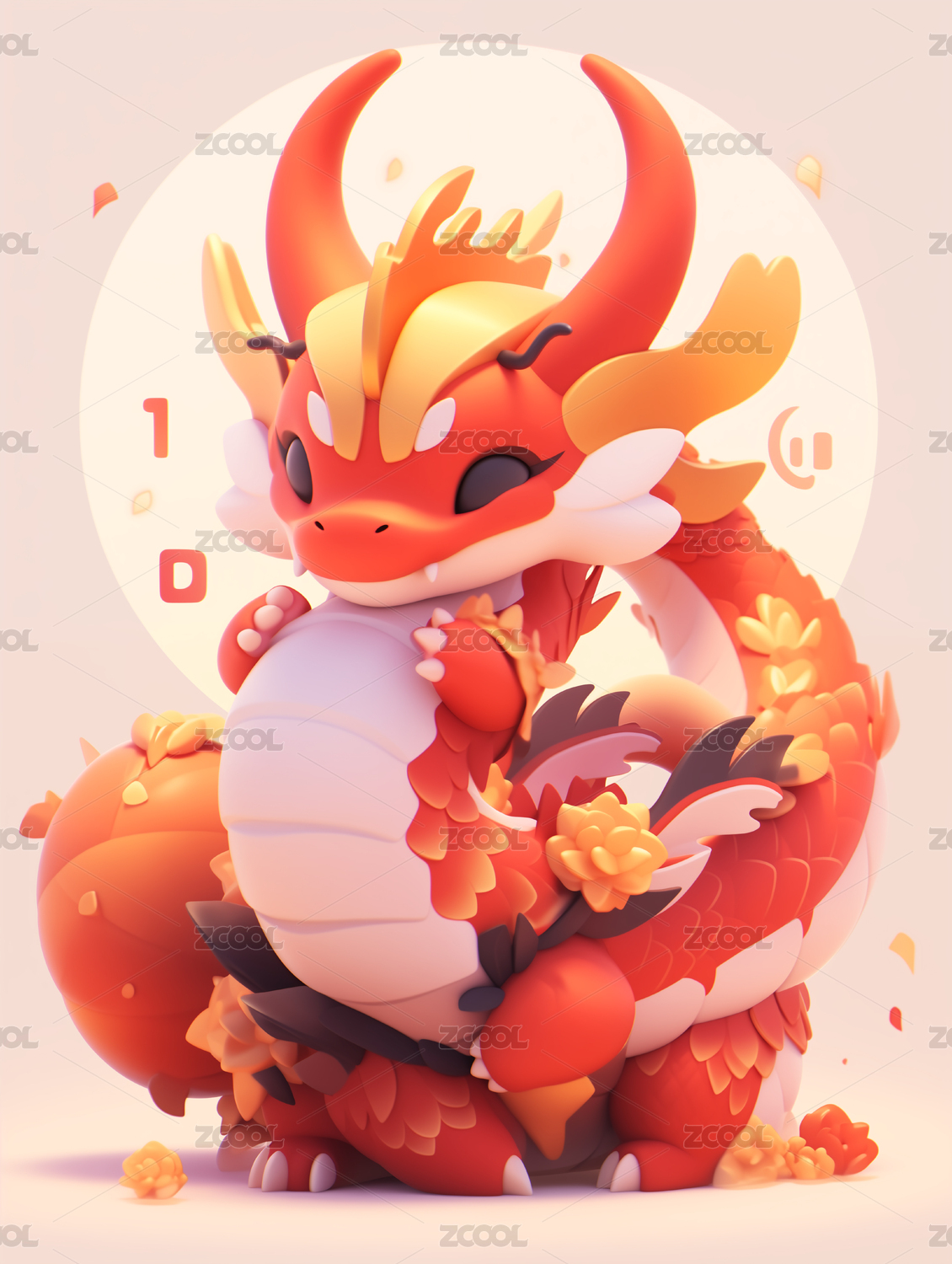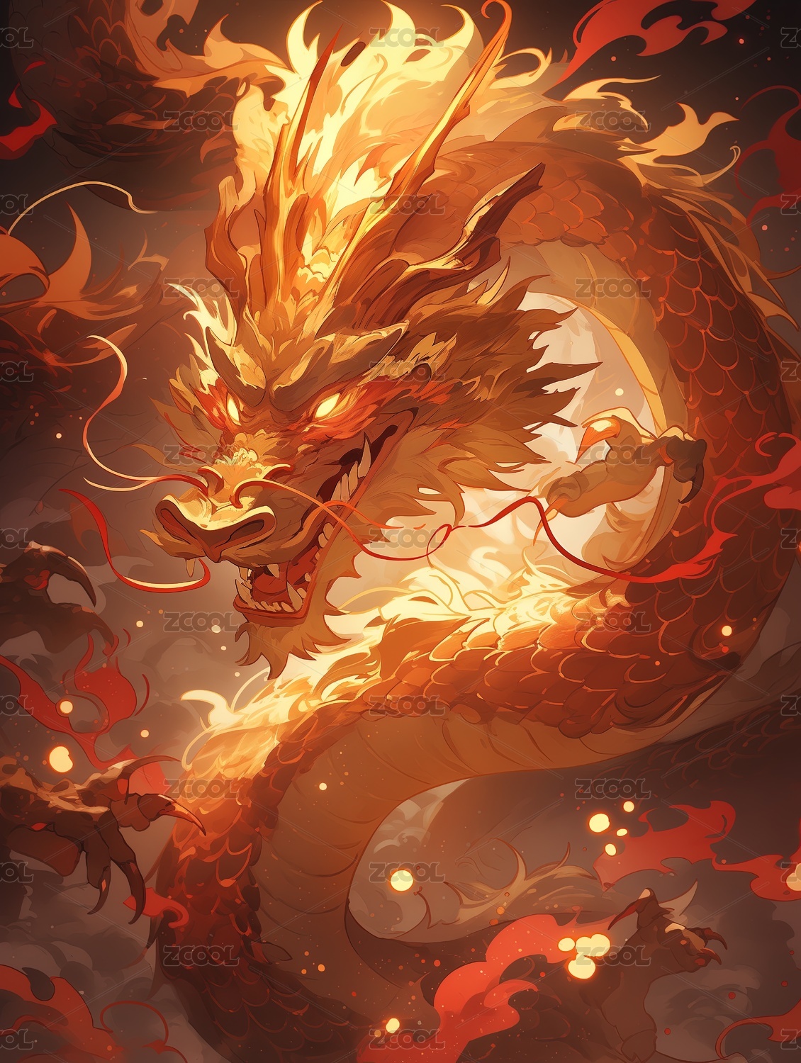 AI,龙,新年,生肖龙,中国年,红色,喜庆,金龙,龙年,春节