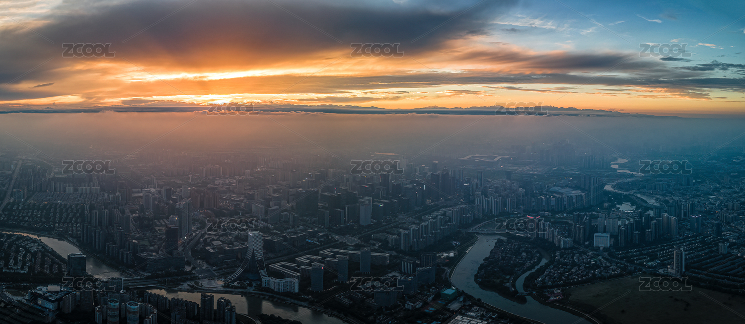 浙江省杭州拱墅区朝晖地区城市夕阳风光