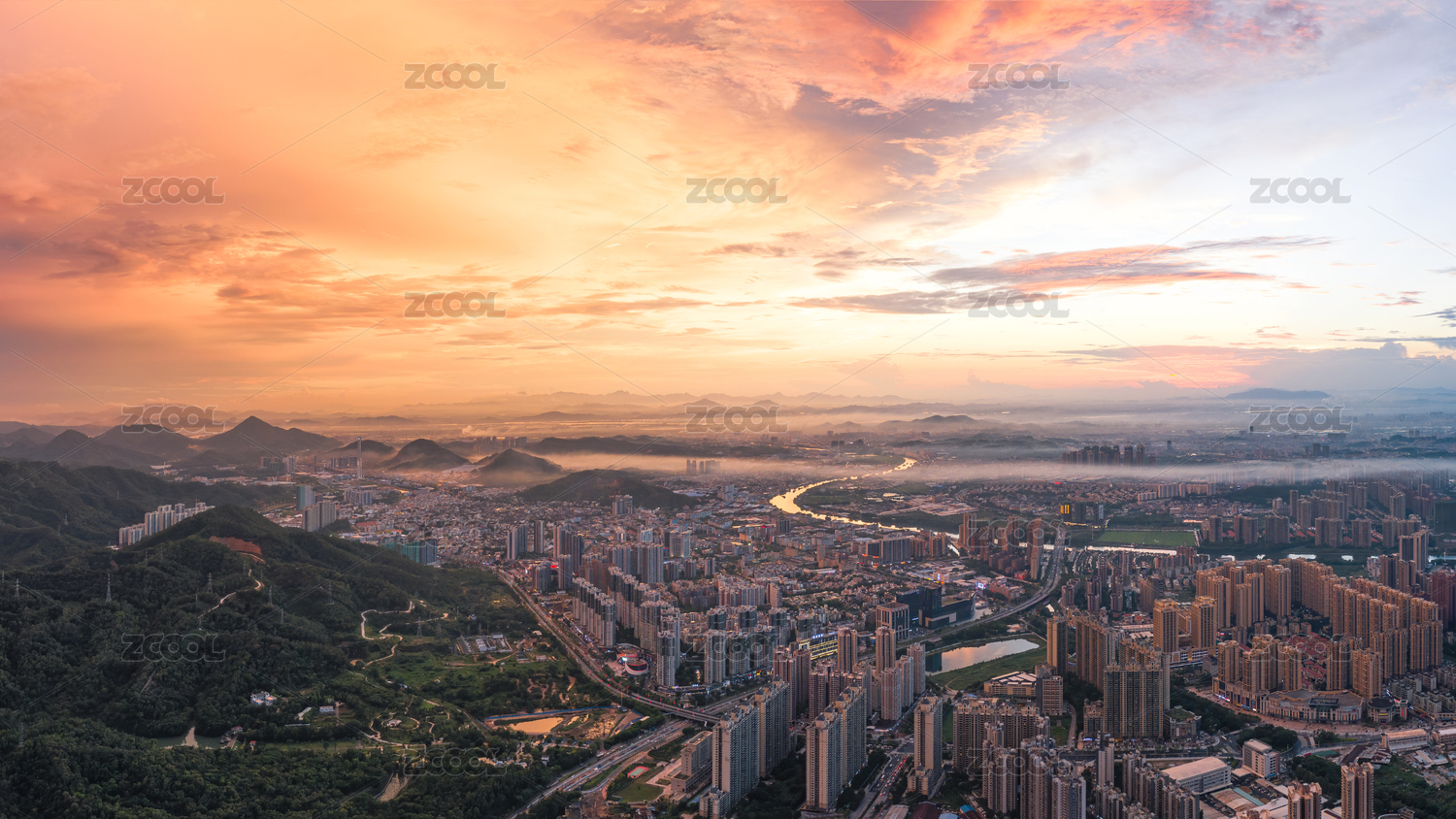 大江大河火烧云晚霞航拍