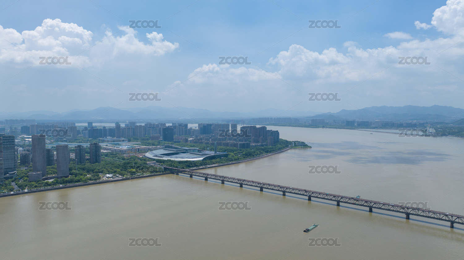 杭州萧山义桥三江口三江汇袁浦大桥航拍