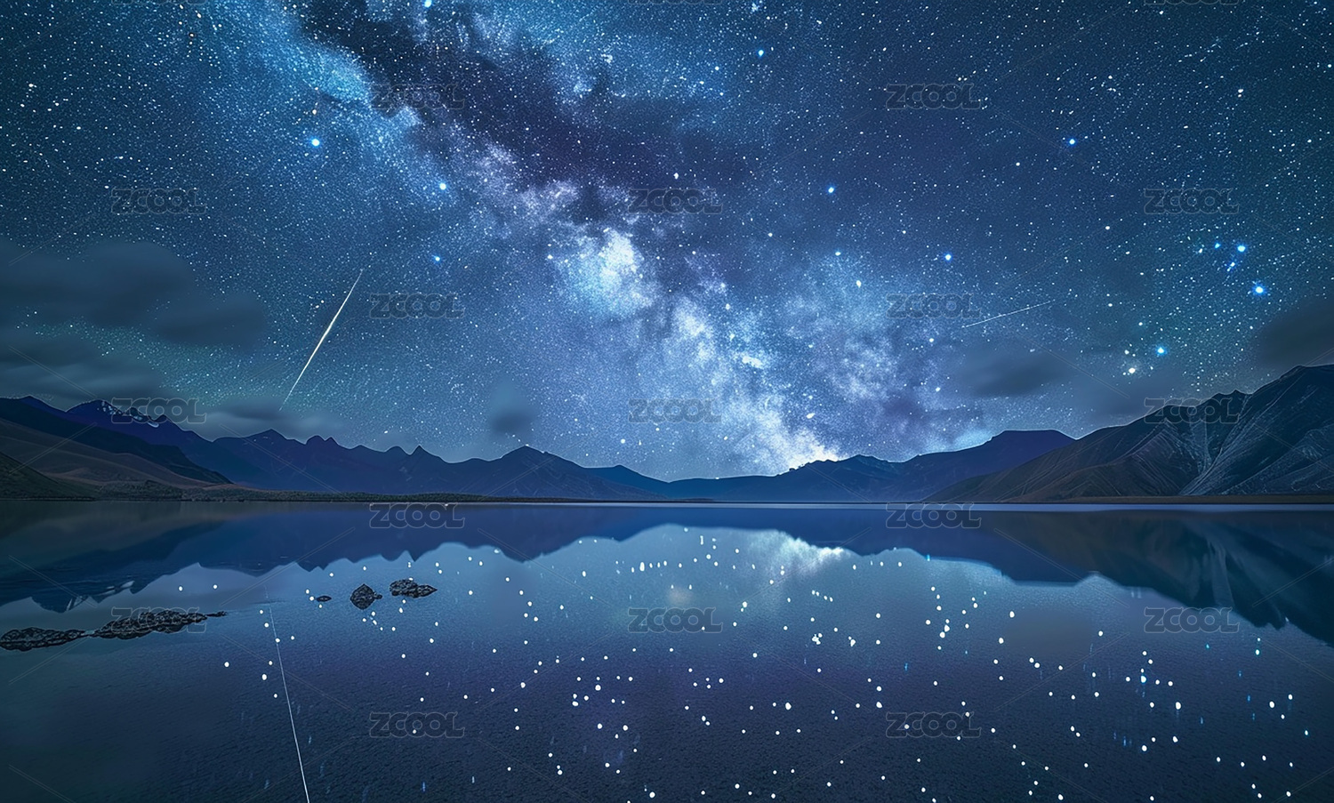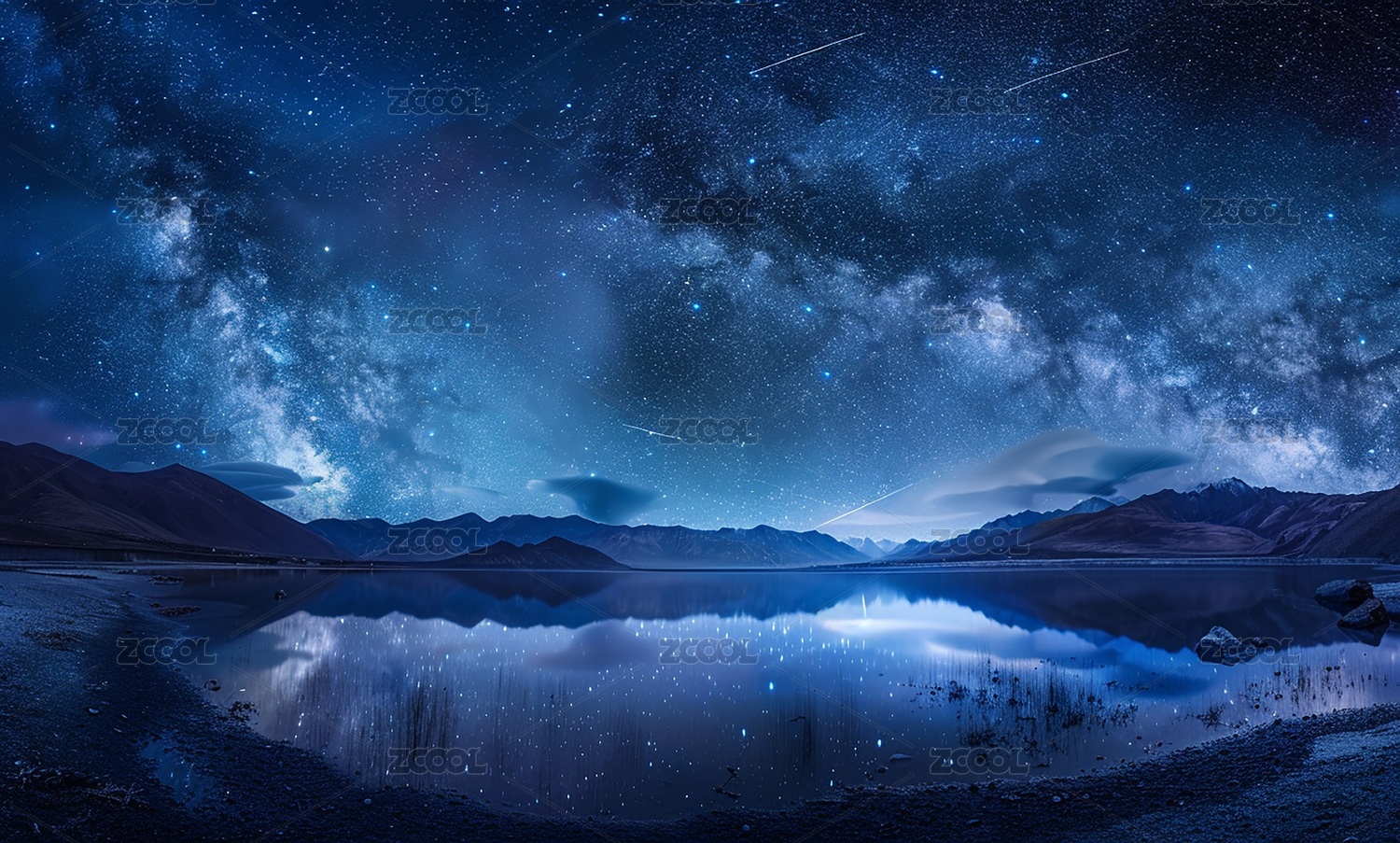 星空下的山湖夜景主题