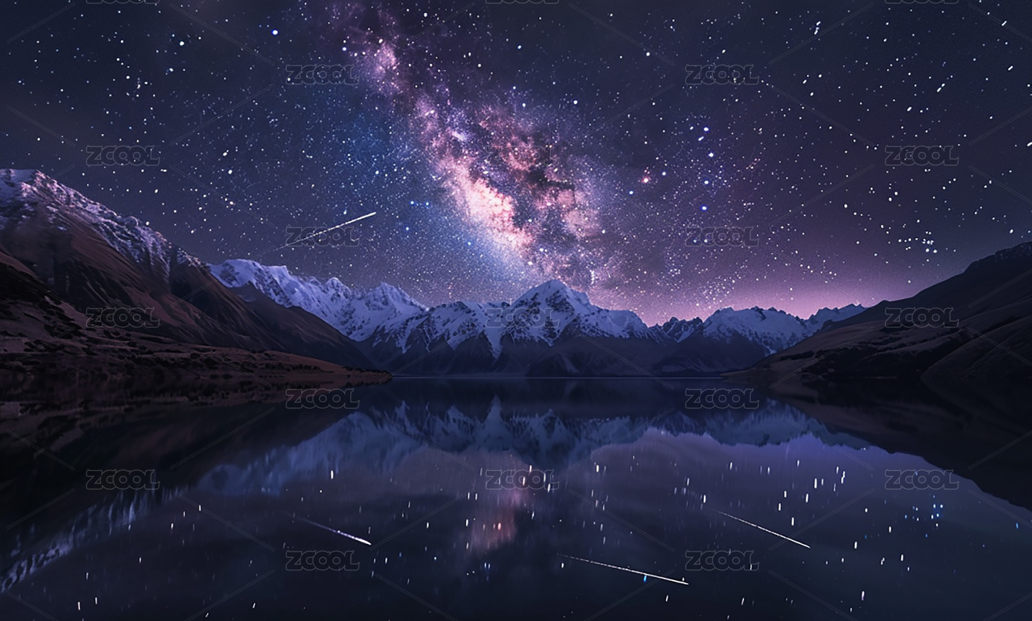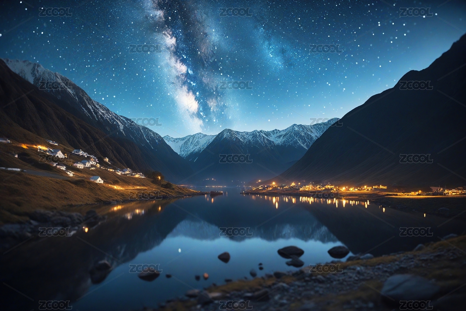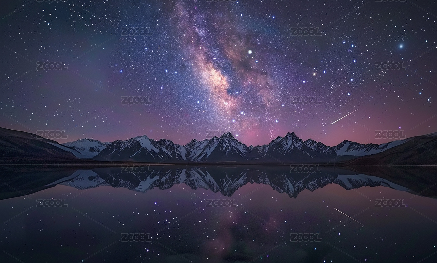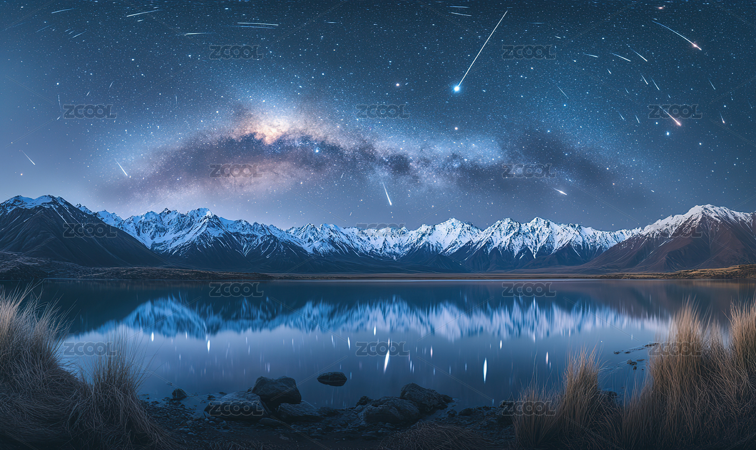 银河下的雪山倒影