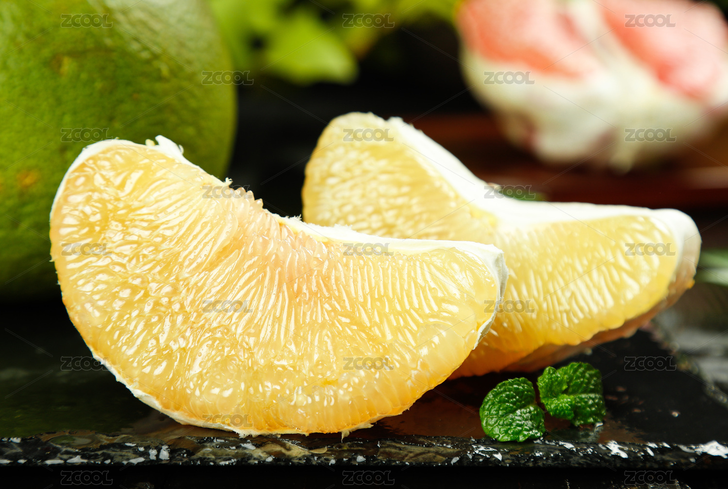深底上放着一块半边剥皮的沙田柚和一块柚子