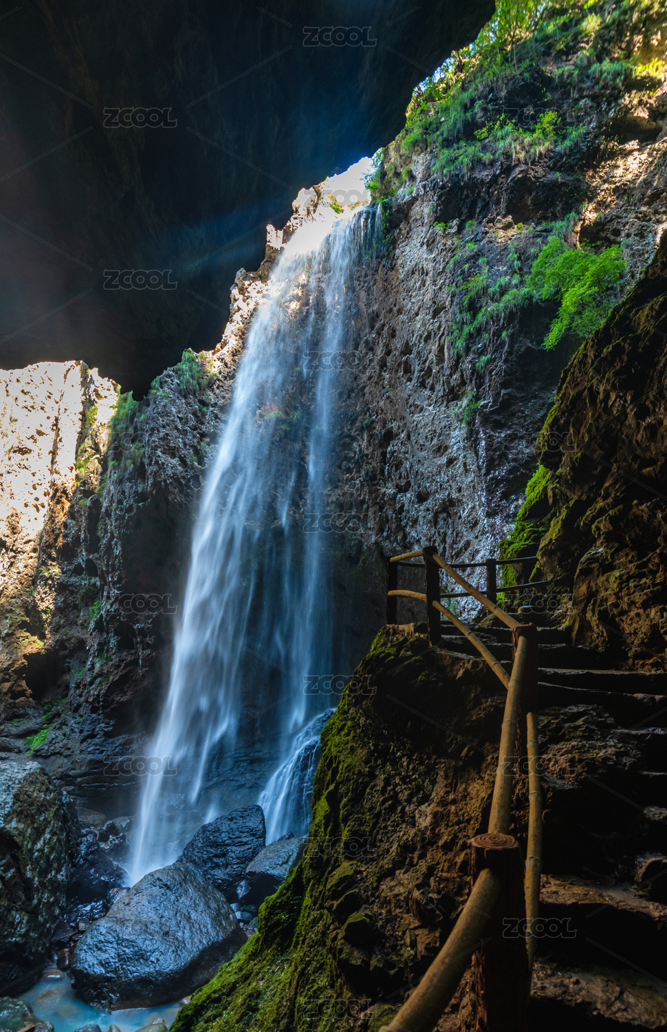 中国重庆武隆龙水峡地缝的瀑布