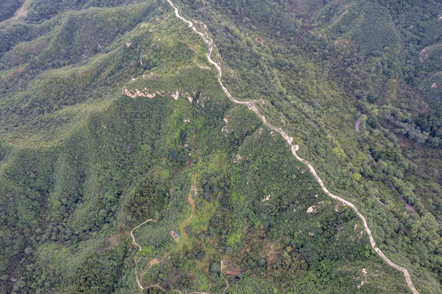 夏天航拍北京郊区长城风景
