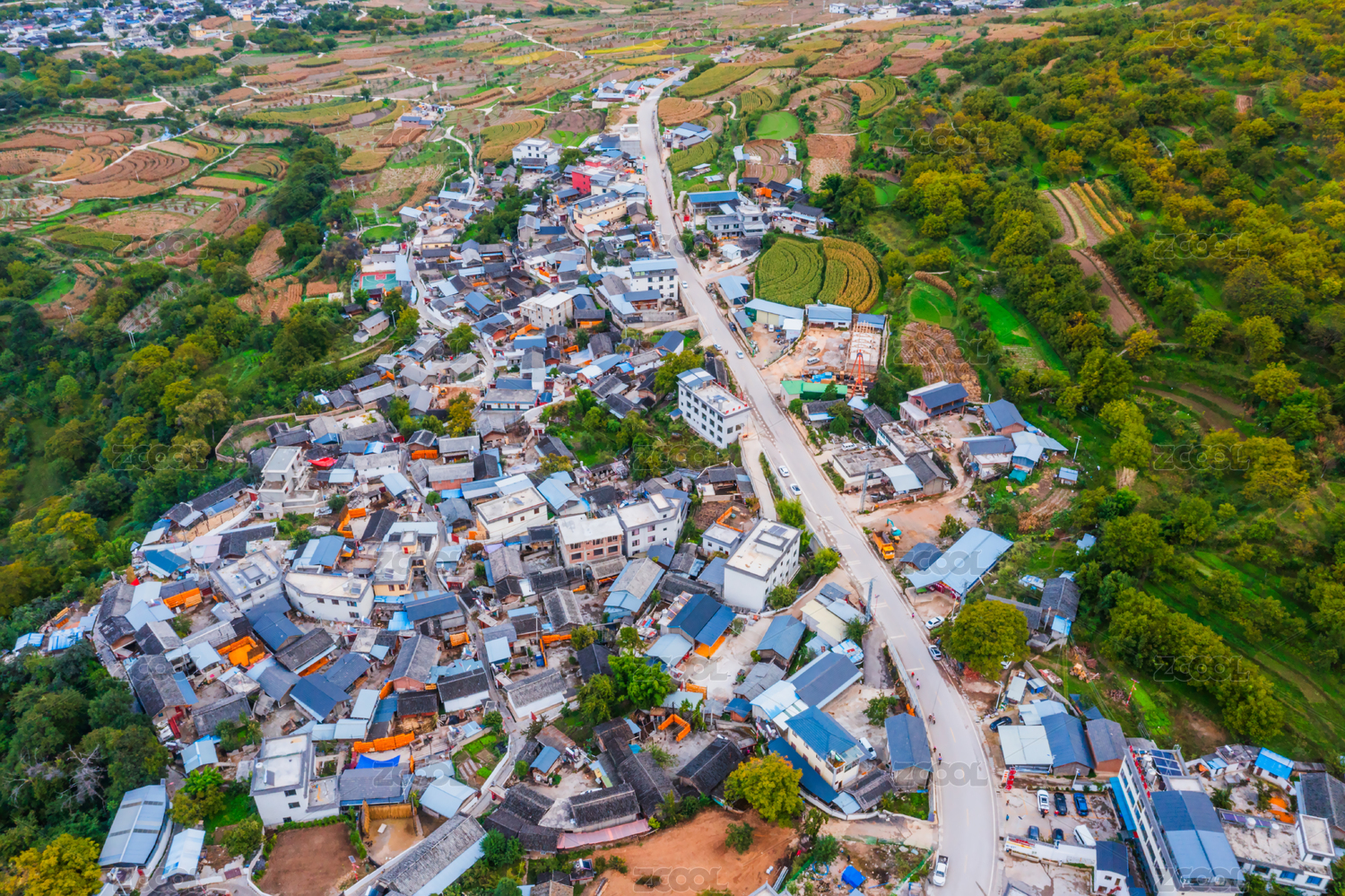 航拍云南丽江白沙古镇原生态纳西族村落古都