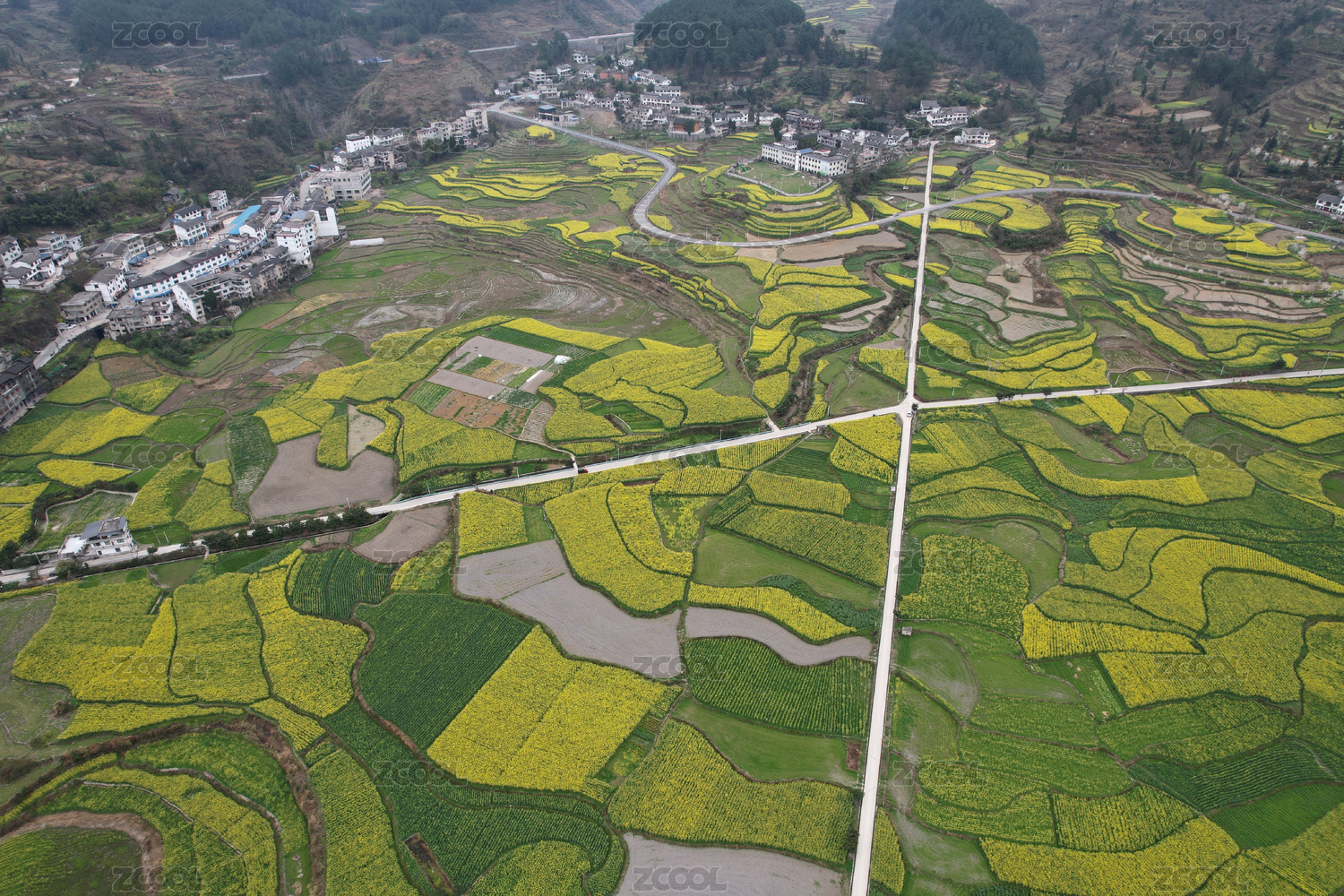 贵州省铜仁市石阡县山间田野里的油菜花田