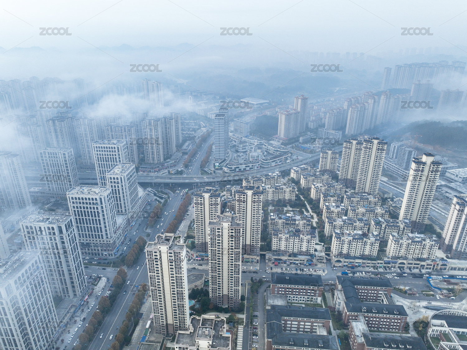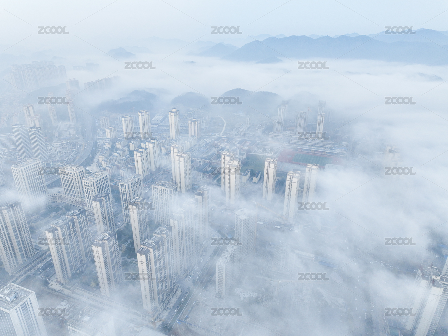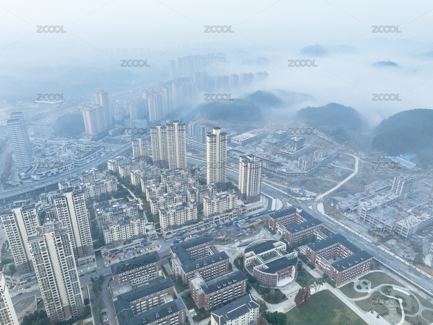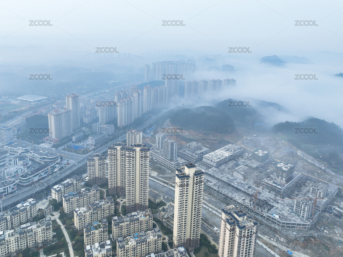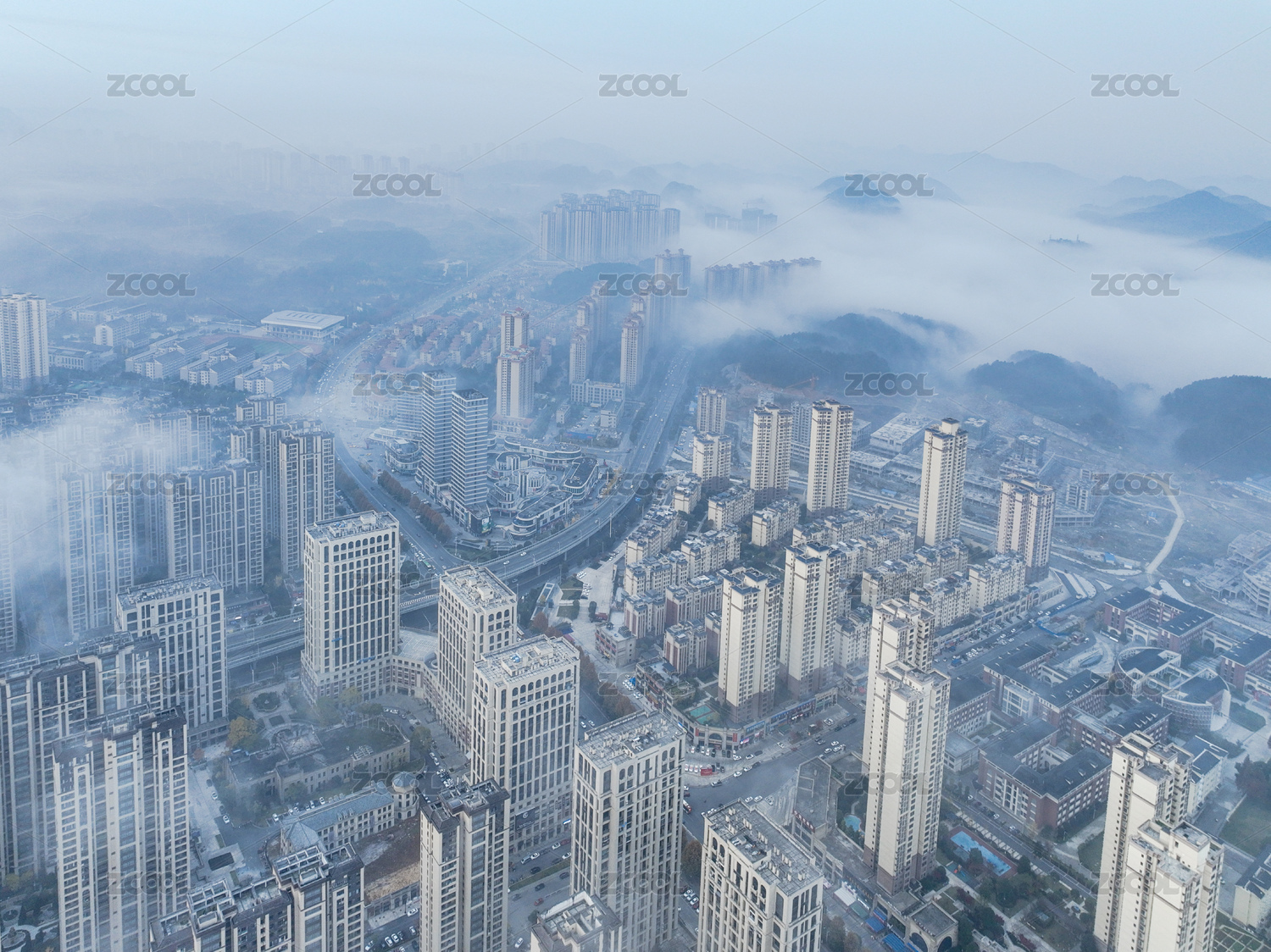 贵州省遵义市,大雾让城市变得宁静而秀丽