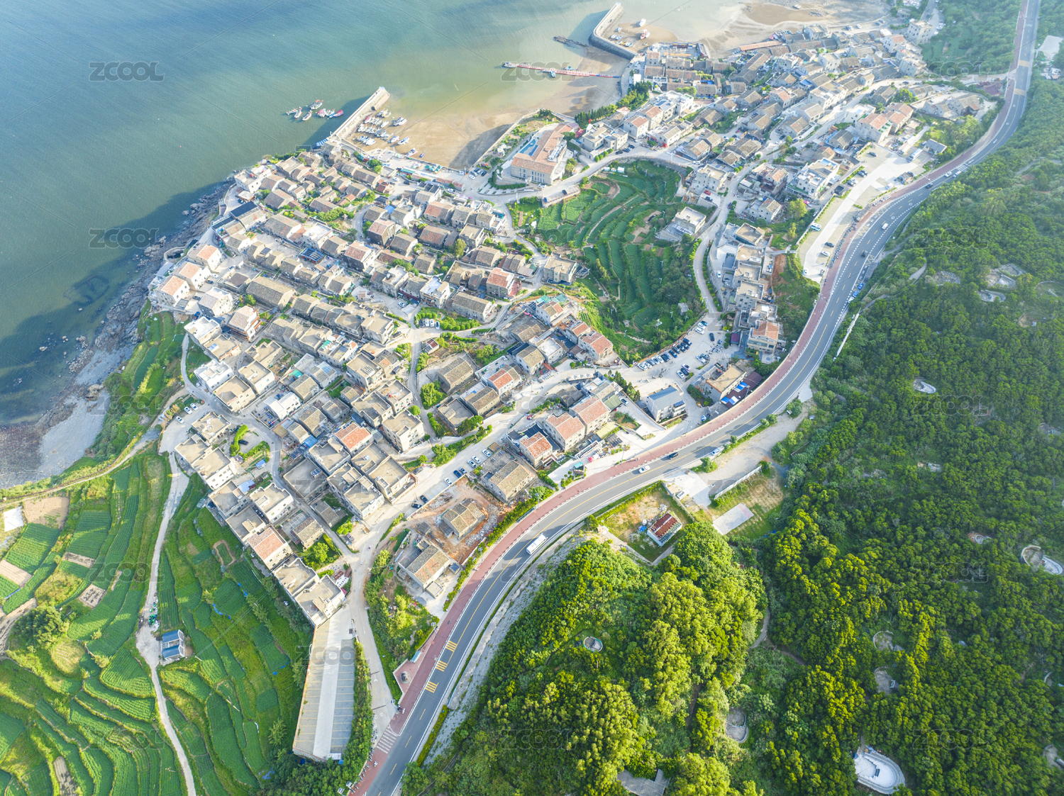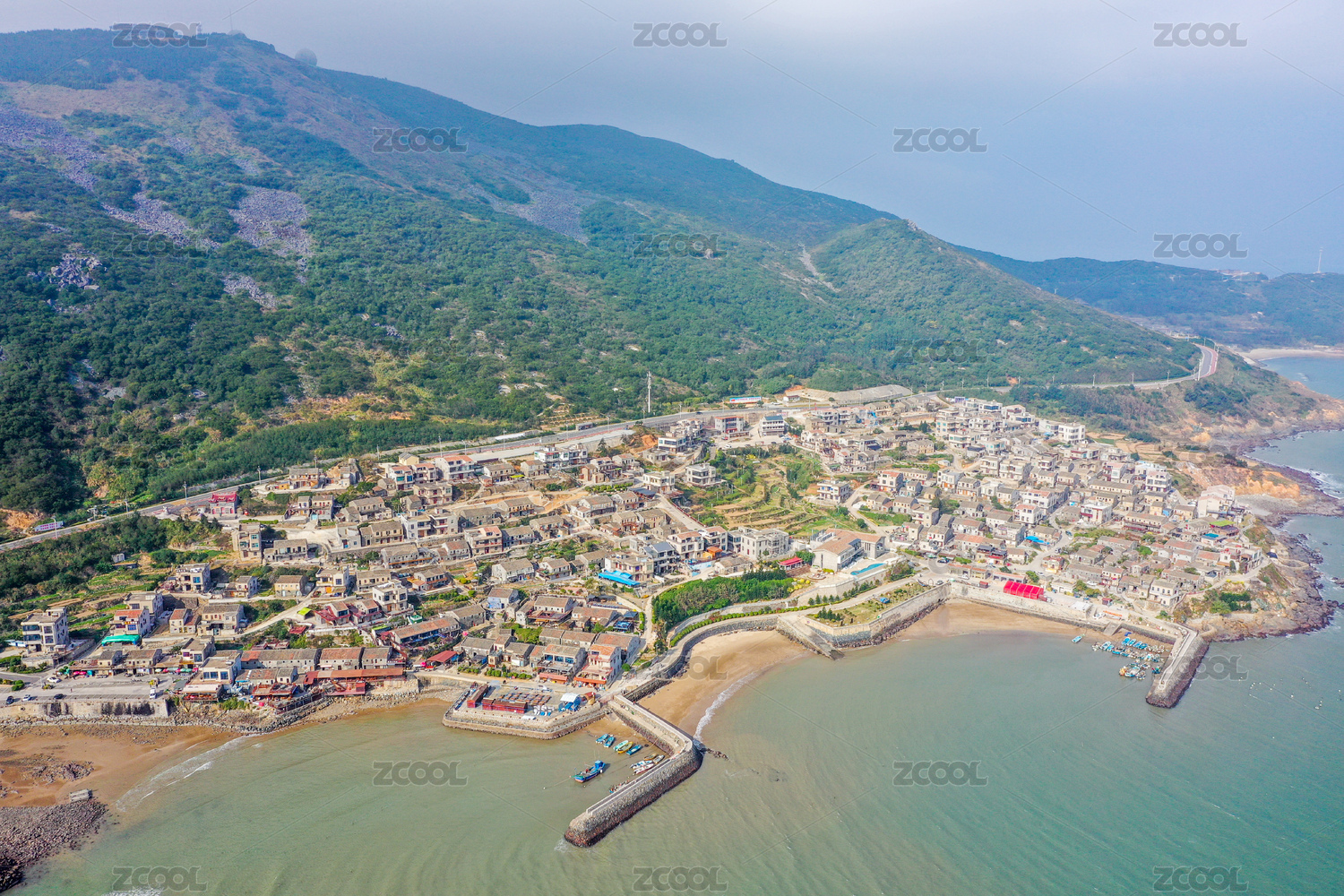 浙江舟山嵊泗列岛村庄航拍