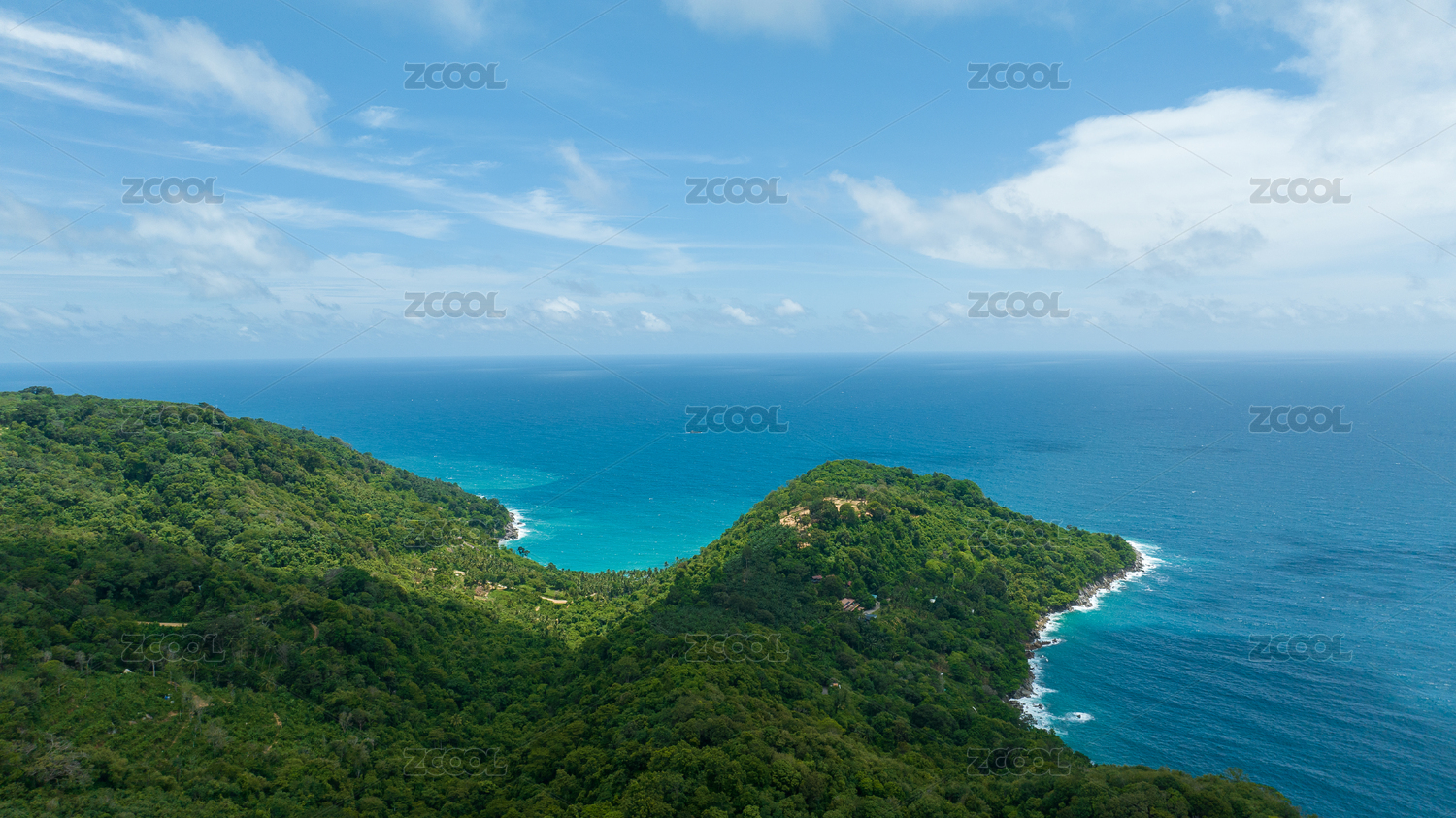 鸟瞰泰国普吉岛热带雨林海岸线和绿松石海水