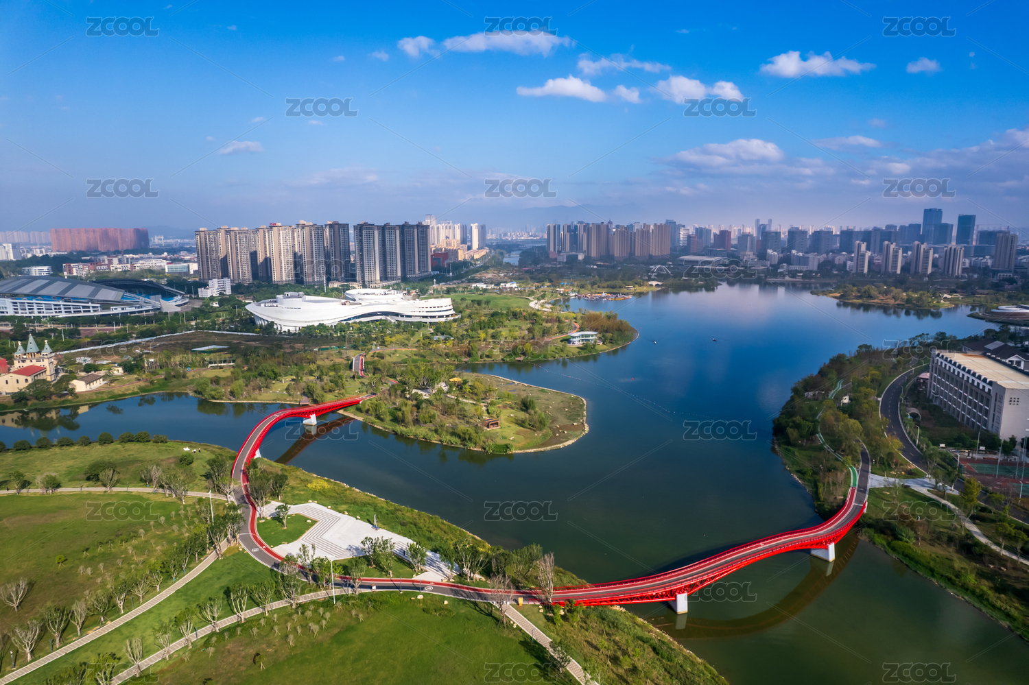 中国四川成都龙泉驿东安湖体育中心航拍图