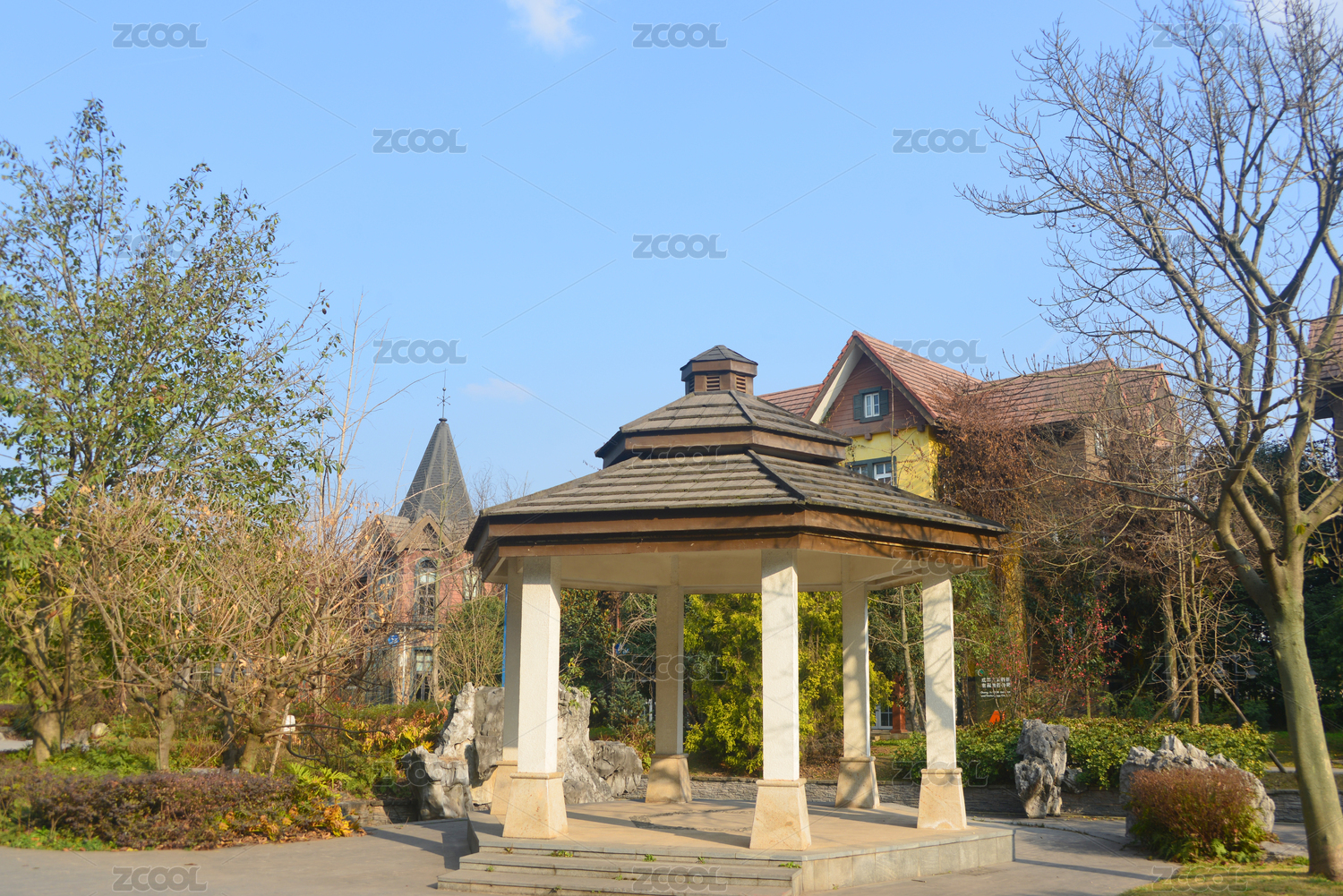 中国四川成都金堂科玛小镇西式园林建筑亭子