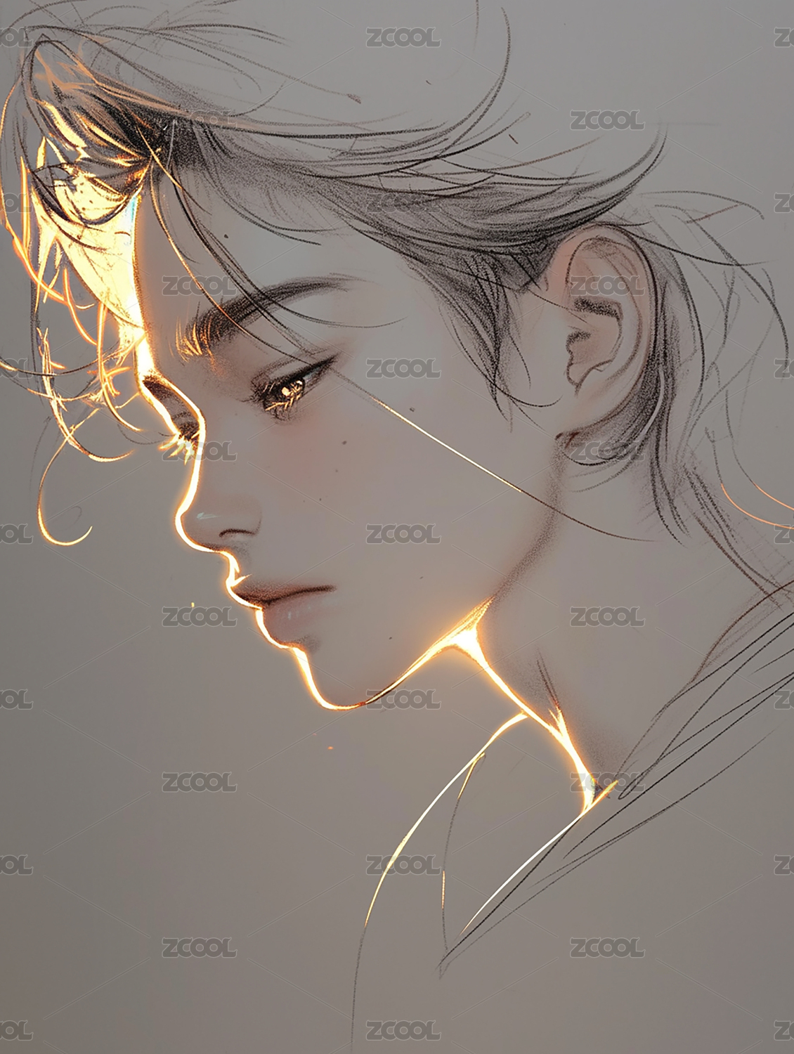女孩,素描,简笔画,铅笔画,铅笔,画像,头像,线条,美女