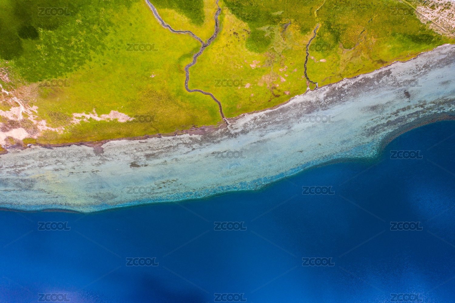 无人机俯拍中国新疆那曲当雄纳木错湖边景观