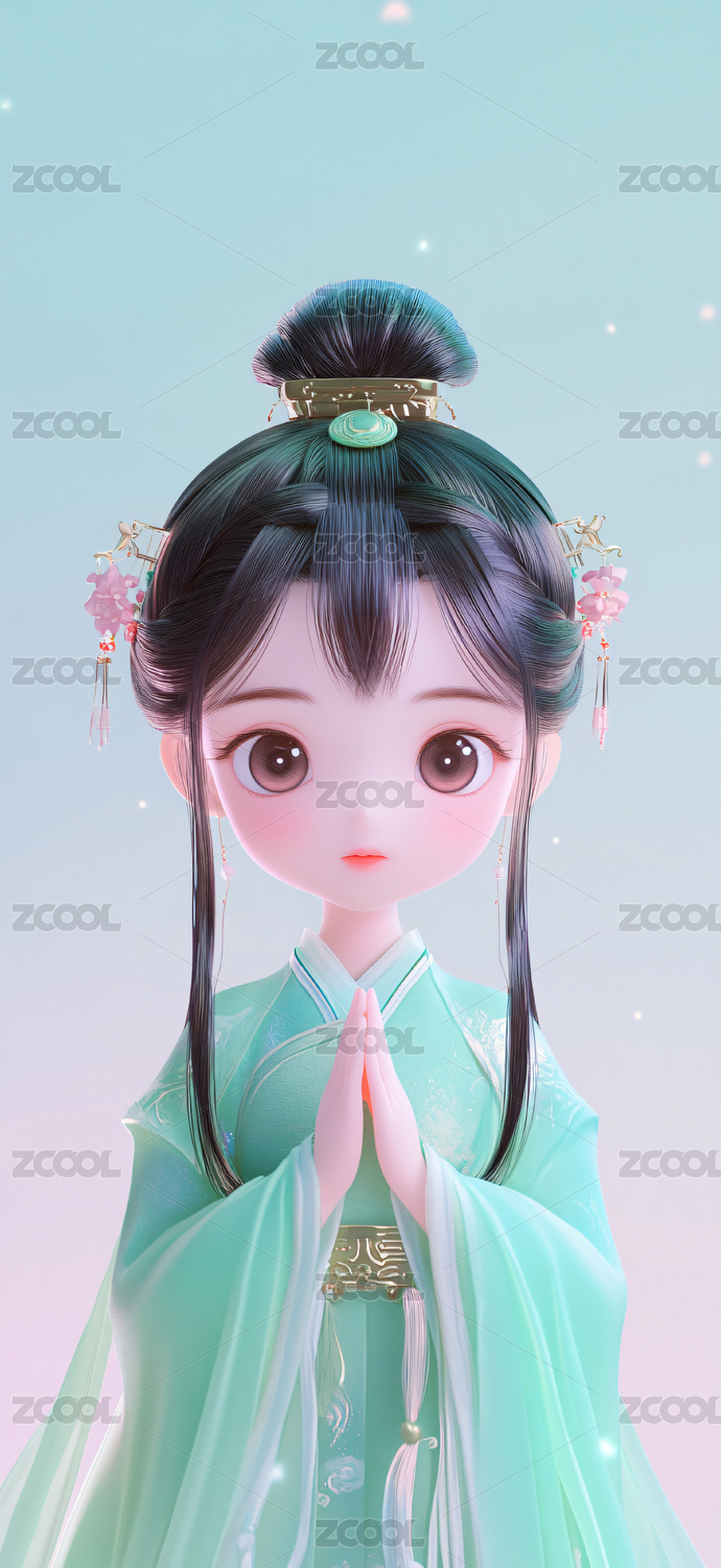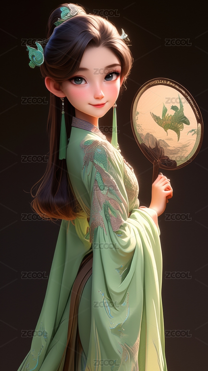 女人,女孩,女性,古装,古代,汉服,美丽,插画,3D,特写