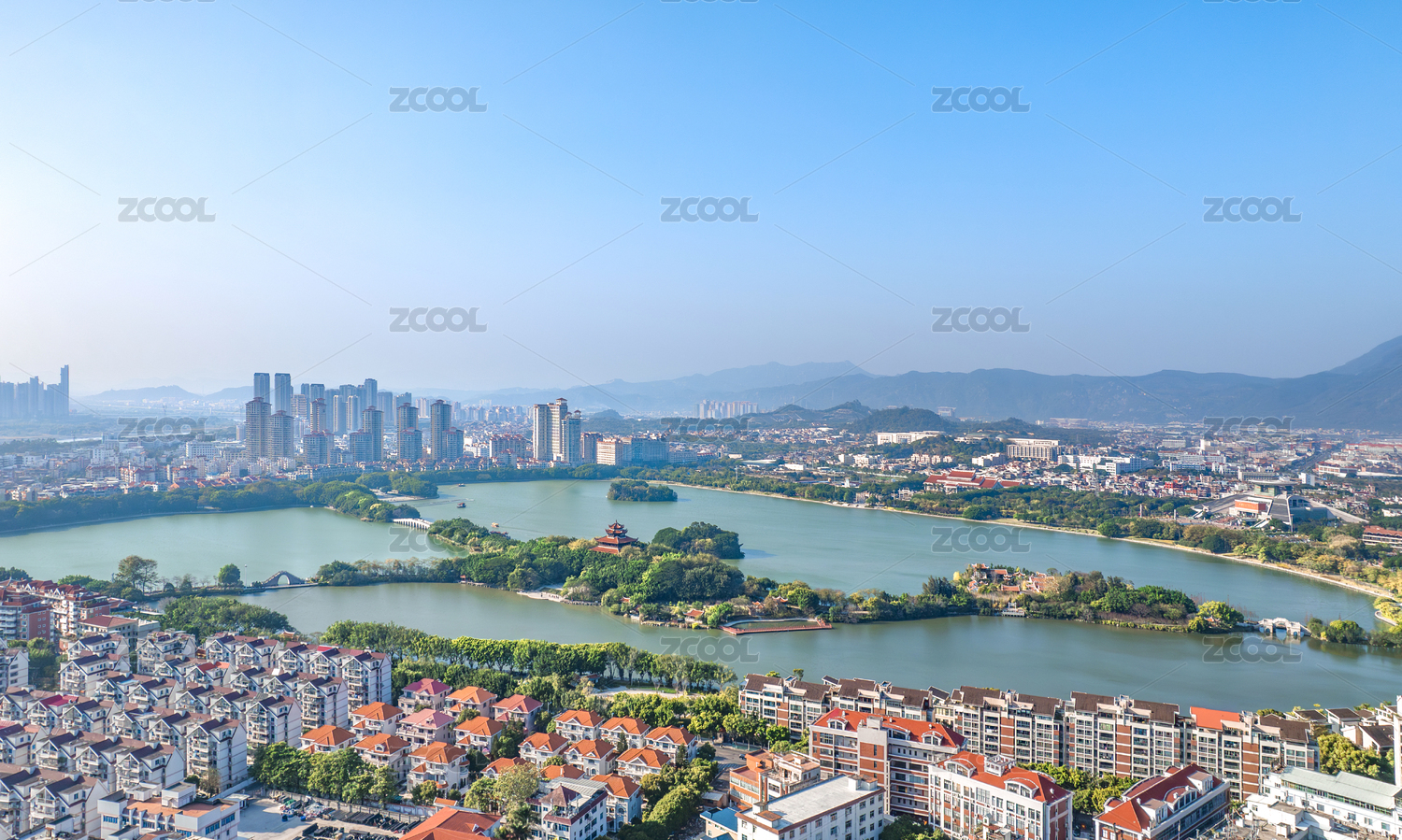 中国广东潮州市潮州古城和韩江两岸建筑航拍