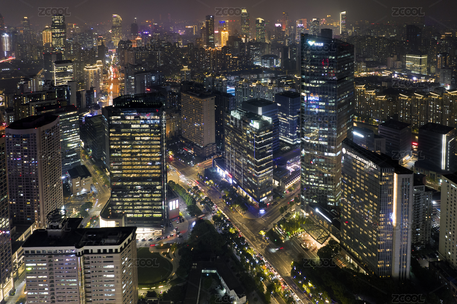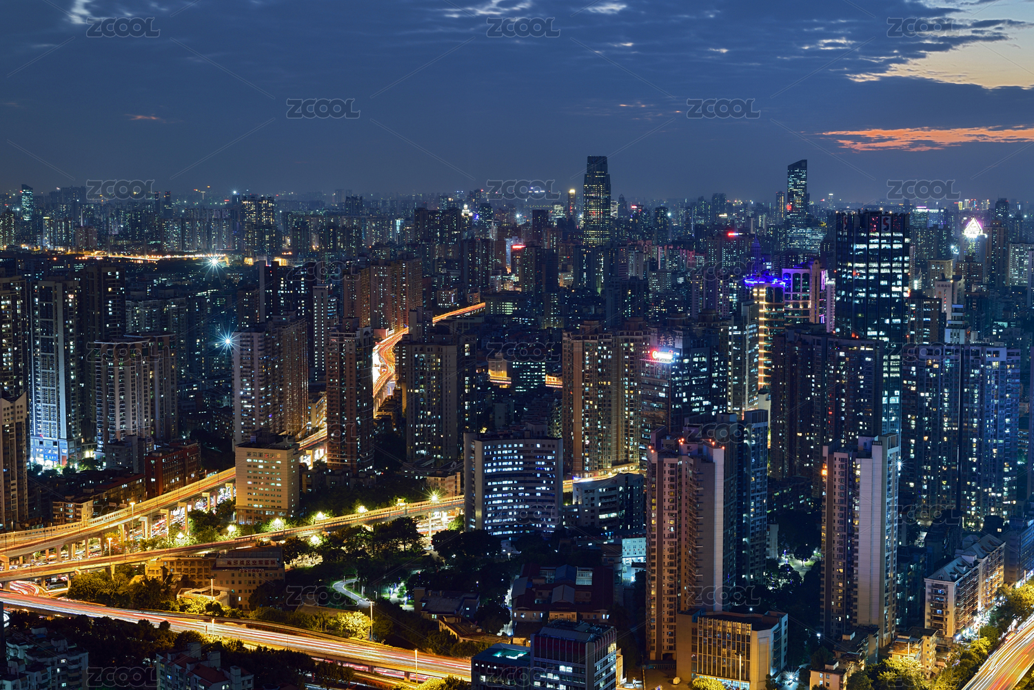 中国上海静安浦东陆家嘴城市建筑风光夜景