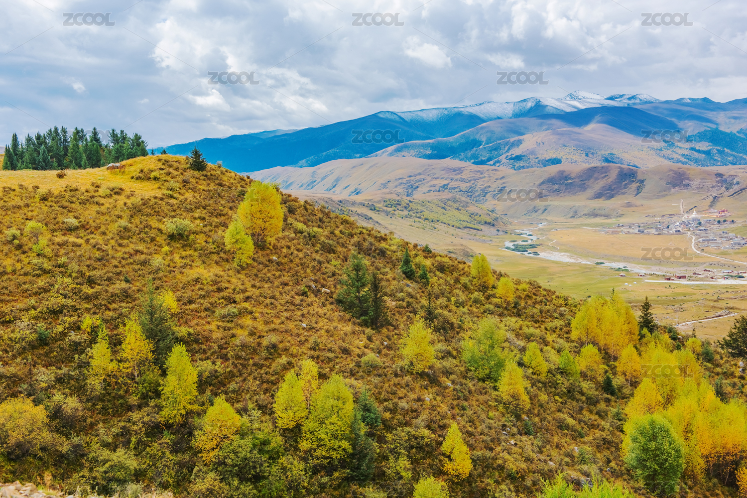 中国四川甘孜贡嘎山下的新都桥镇秋季风光